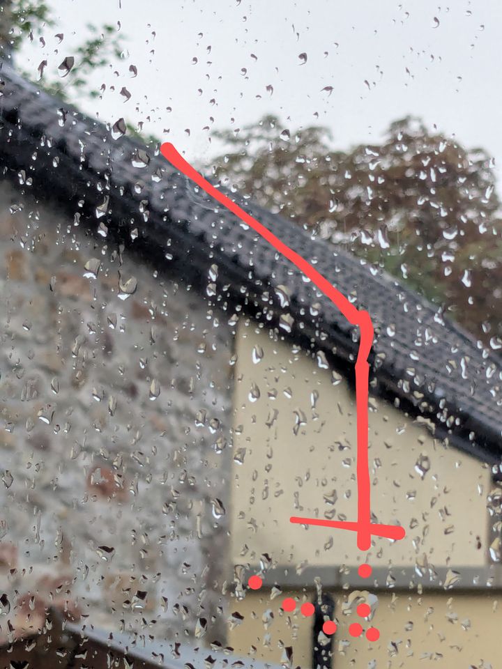I am interested in buying the house on the left. Circa 20 years ago, maybe more, the current owner of the house on the right simply extended what is their kitchen into this property's curtilage, deciding to take around 6 feet to have a bigger area, even rendering the outside wall above it, and then placing the flue on the outer wall. Cheeky.
