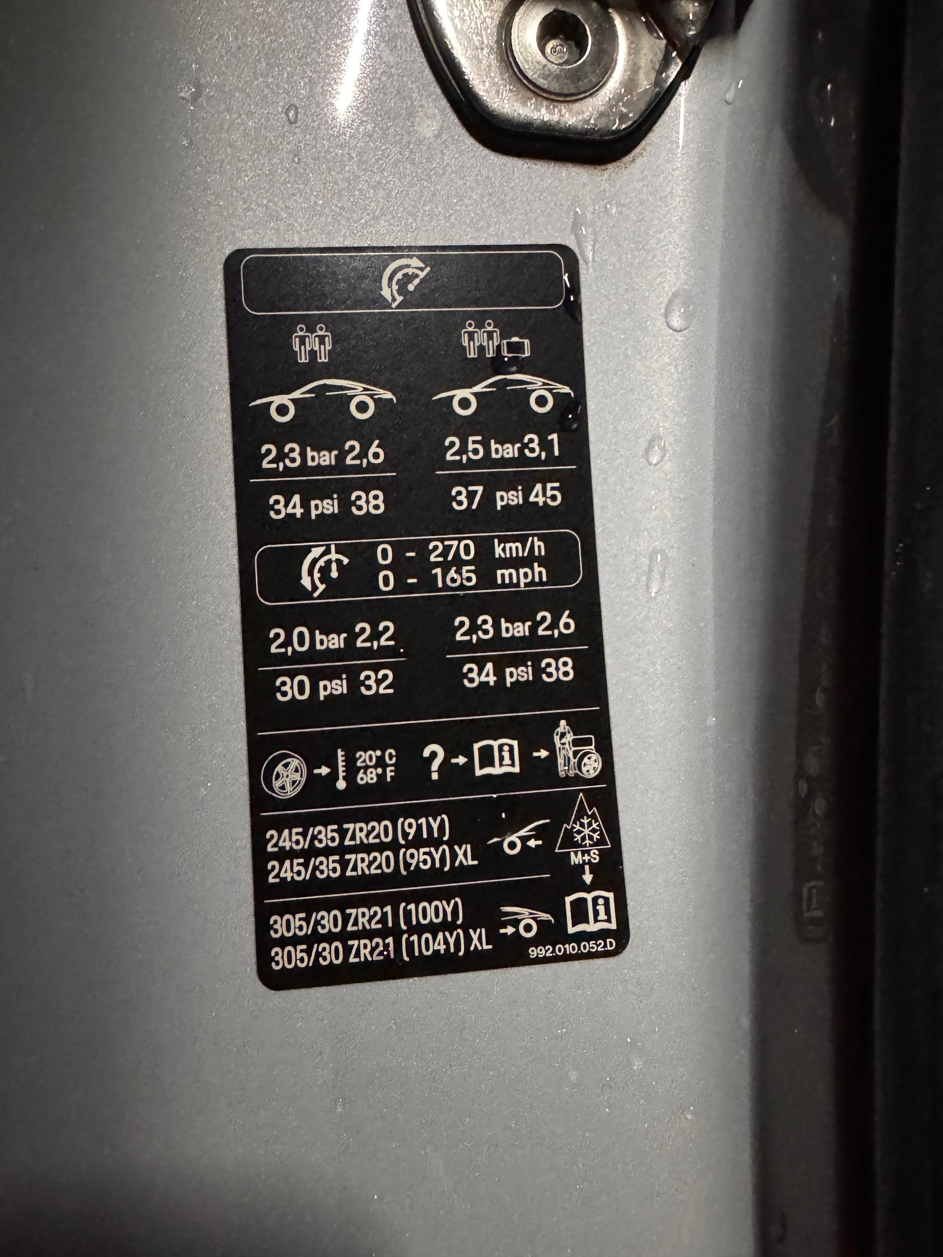 Can someone help me to decipher the tyre pressure plate on my 992.1 T wearing PS4Ss.