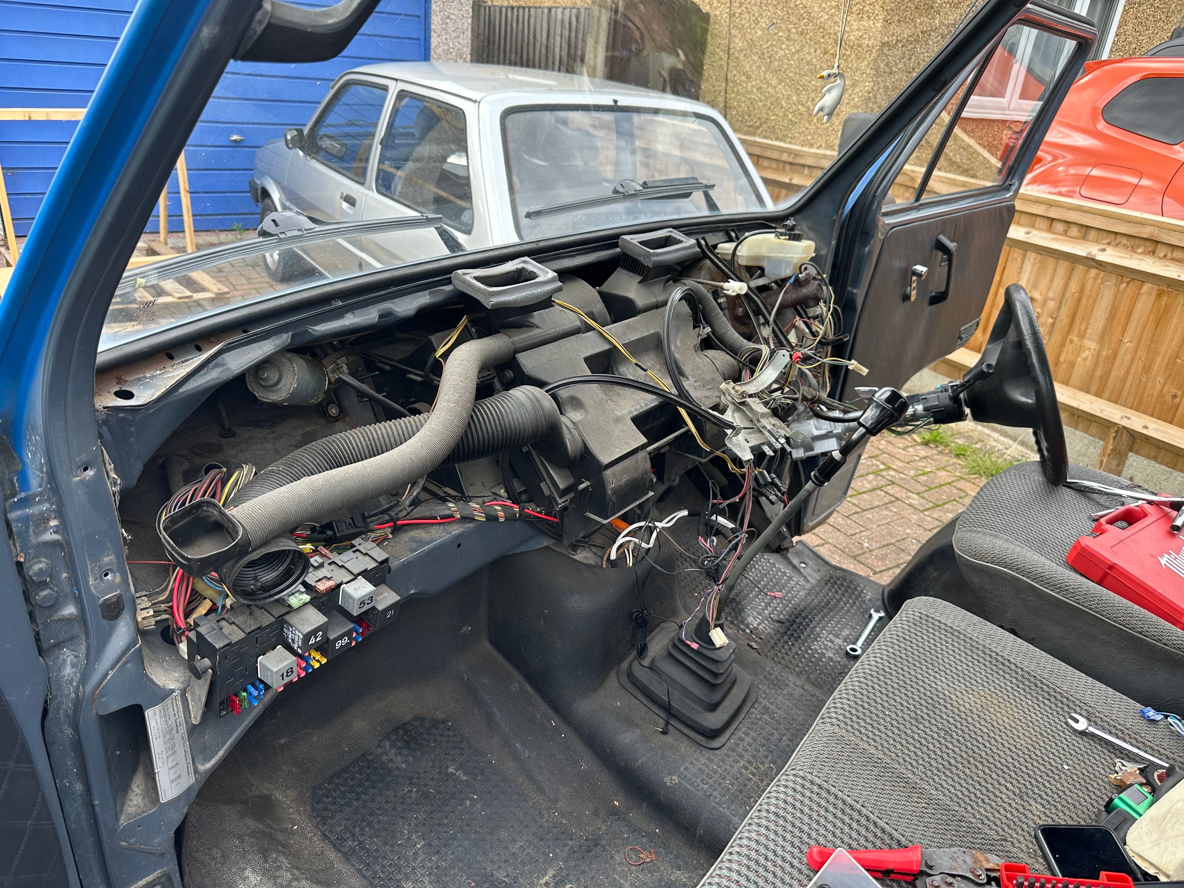 Today most of the bits had turned up so I decided to start with the blower motor. Annoyingly that means having to remove the dash. Thankfully the dash is pretty easy to get out.