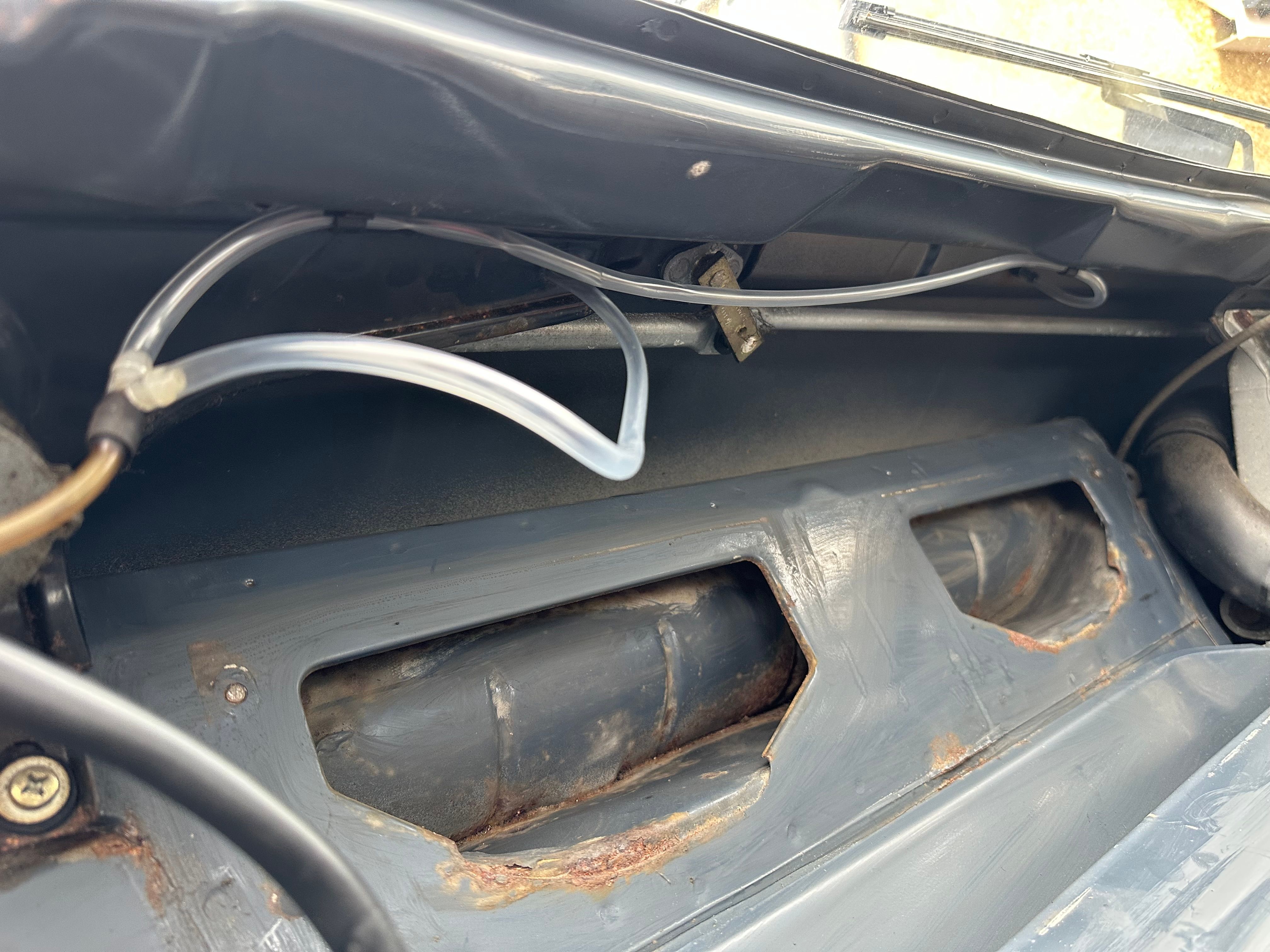 This is what’s behind the heater box. It was filthy behind there so the vacuum got a good workout clearing up years of cack!