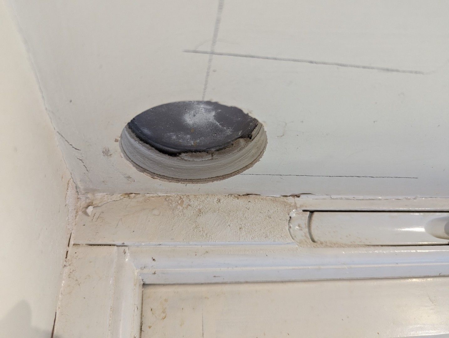 I’ve tried using plasterboard anchors above the window, with predictable results. Holes now filled! There don’t seem to be any battens there either.