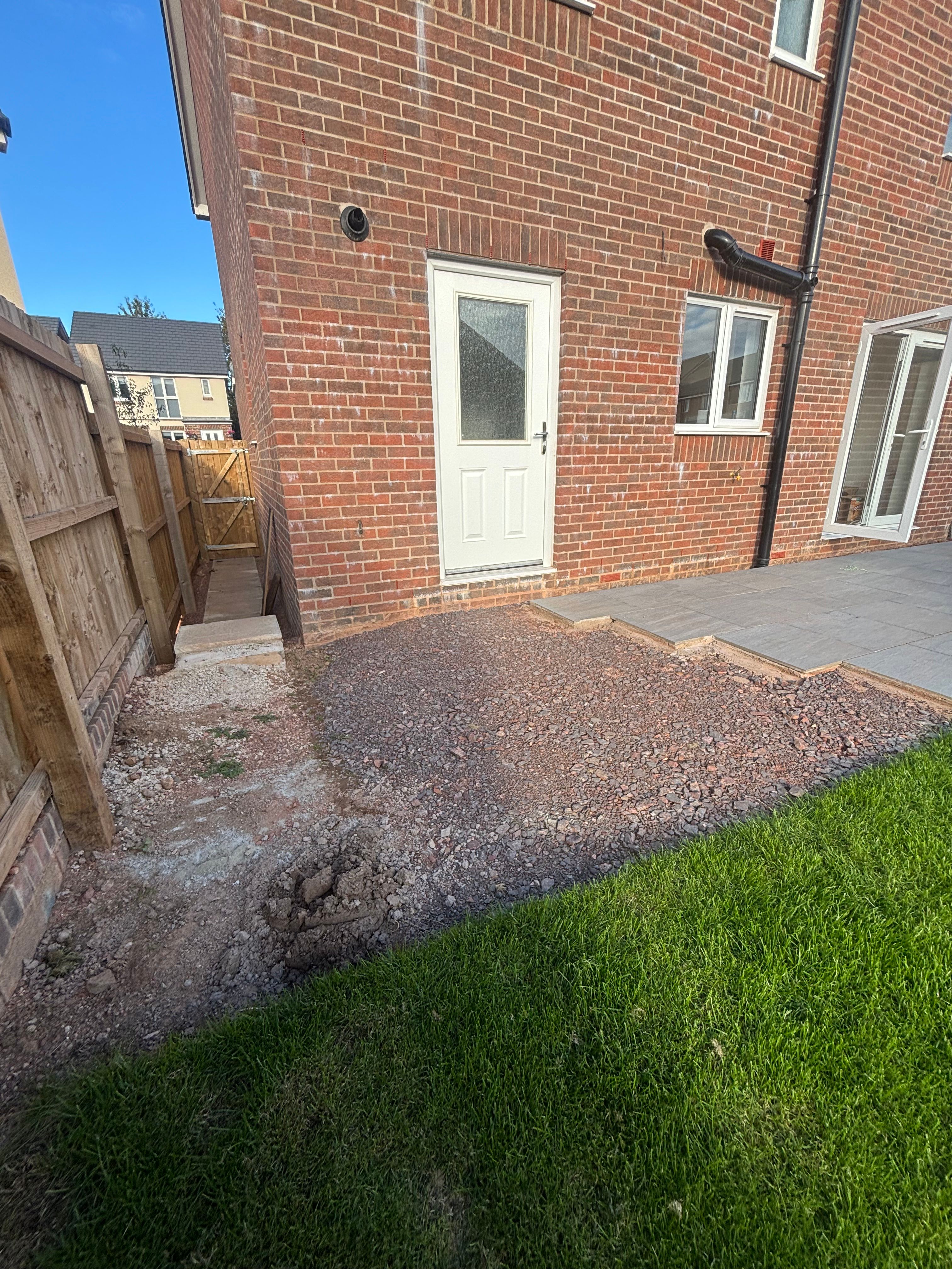 So i have been (slowly!) building a patio in my rear garden, this is the main area - and i want to replace the slabs down the side up to the gate with the same porcelain slabs, including the ones on the steps.