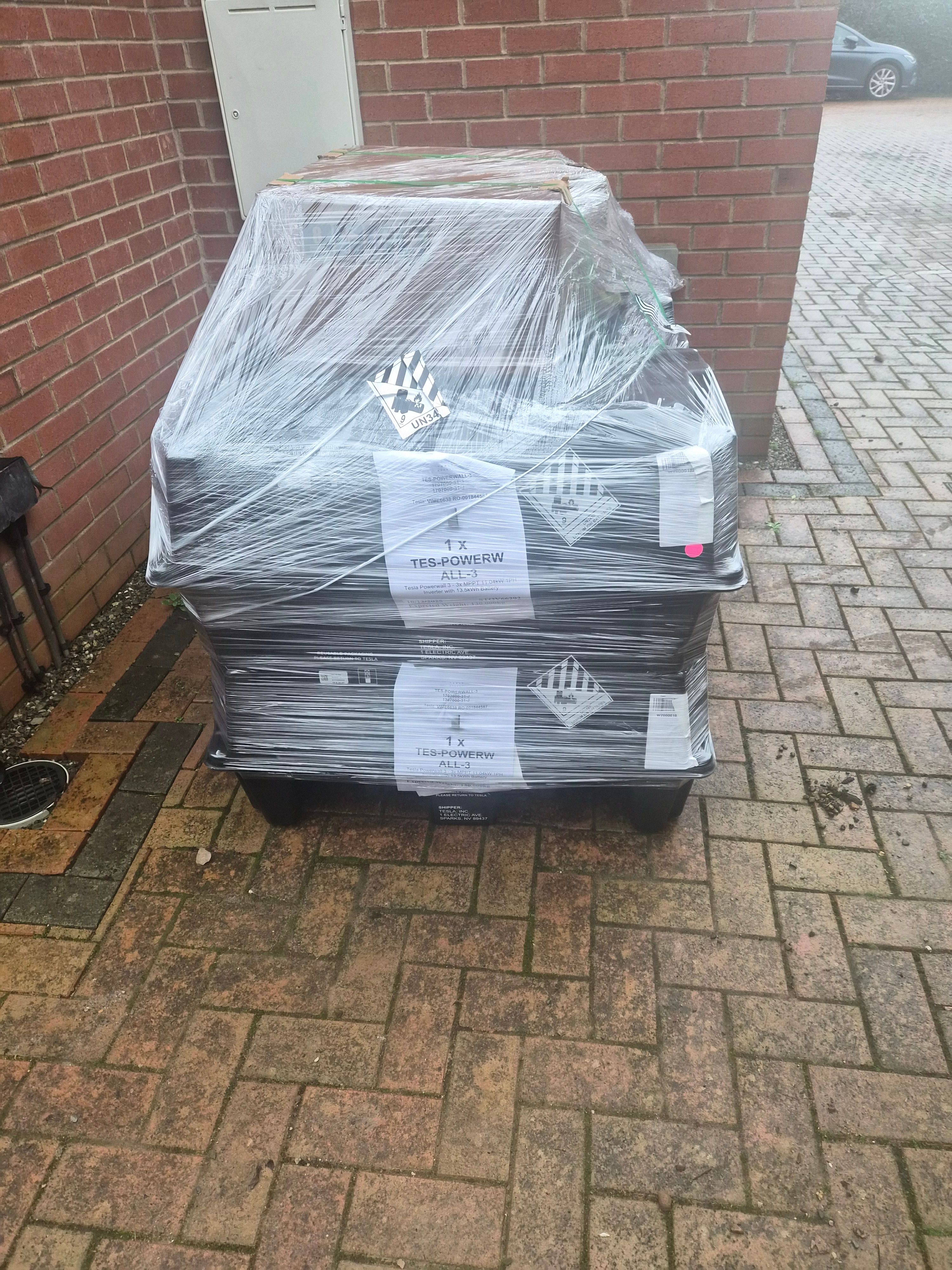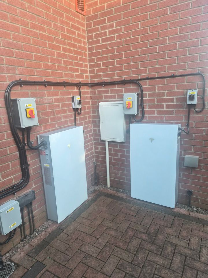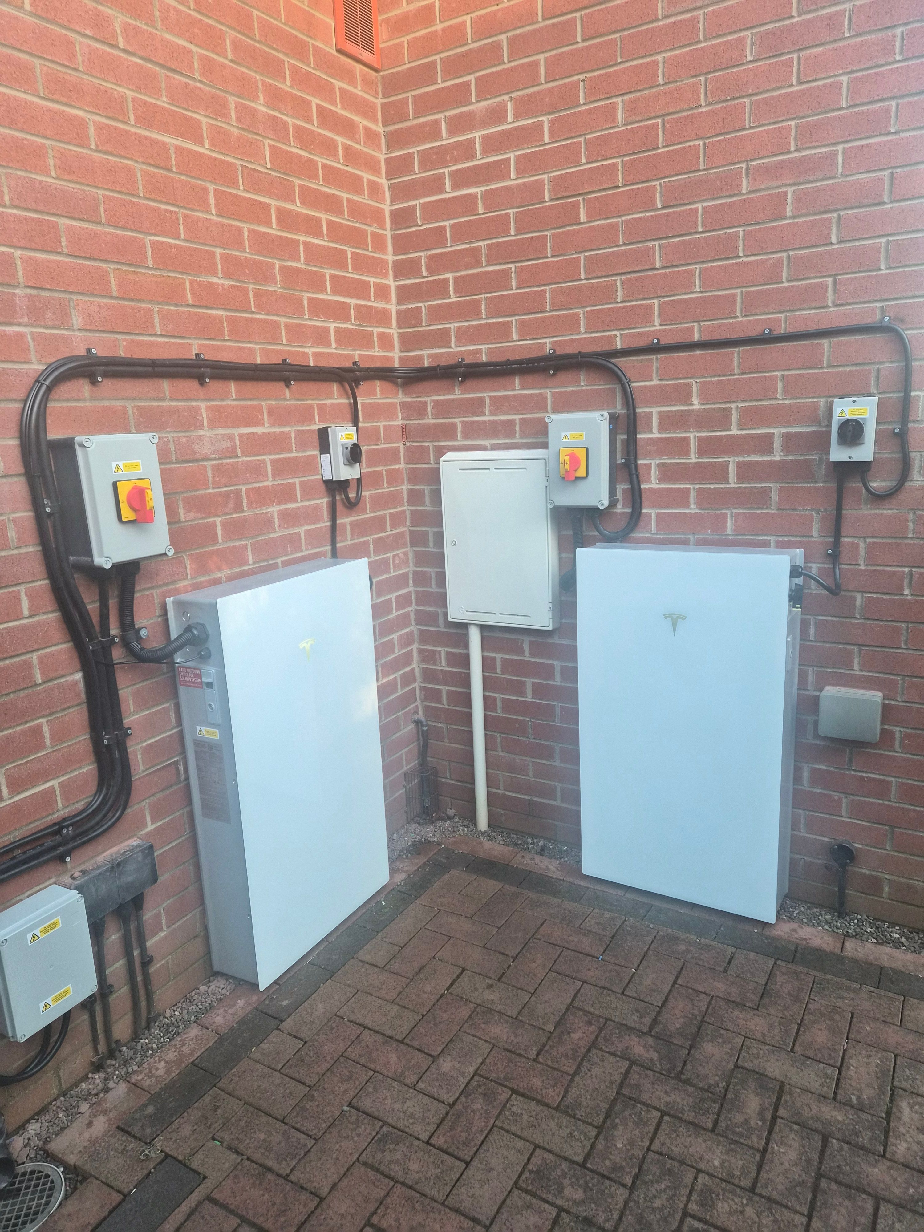 2 x PW3 Tesla Powerwalls. Note that both are the full inverter models, we dont have expansion packs. This was because the dno refused a g99 upgrade so limited us to g98, however my installer found a loophole which allowed via a g98.1 application to have 3.68 export but 7.36 load internally.