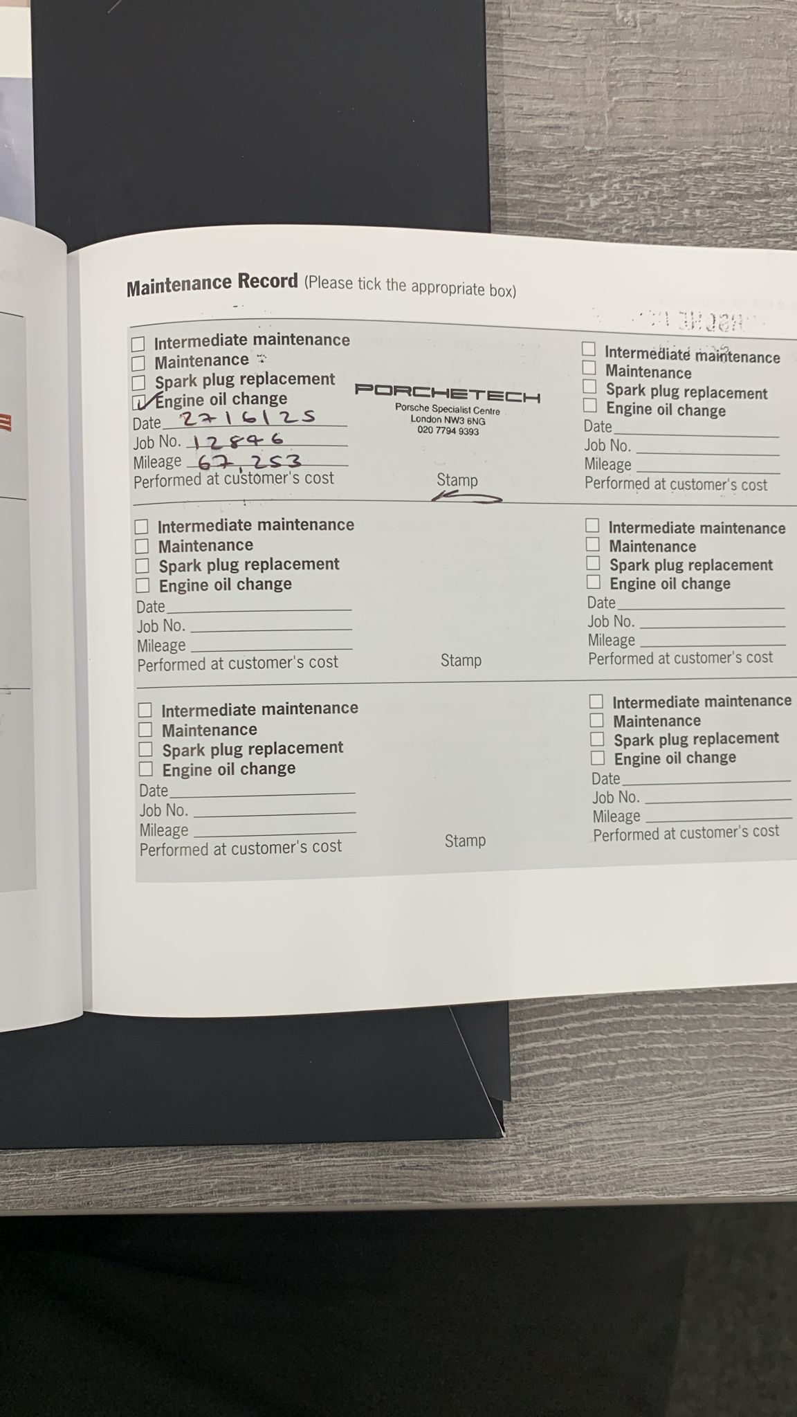 Also just to note all the services where done at Porsche dealership.