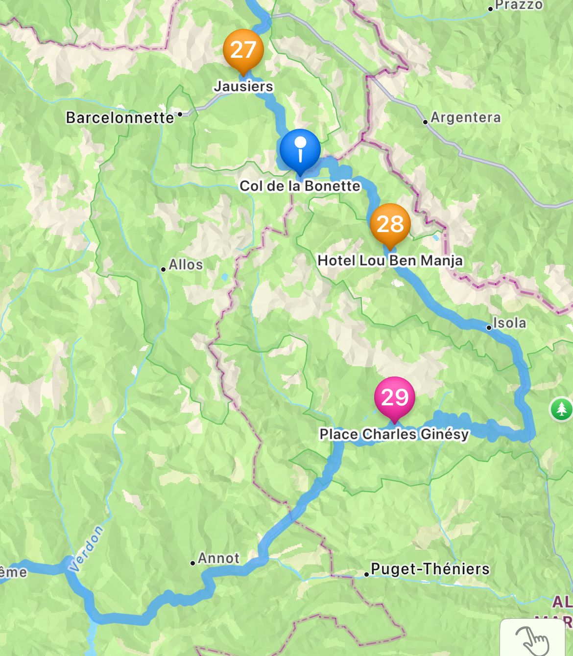 What’s your precise route south of Grenoble and back north on the Route des Grandes Alpes? E.g. It looks like D1075 whereas I’d probably recommend the N85 further west. It’s not that clear how you get across to south of the Col de la Bonette either.