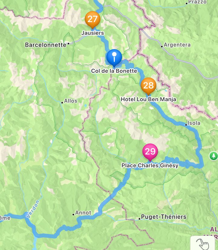 And here's the route I've got departing Col de la Bonette: