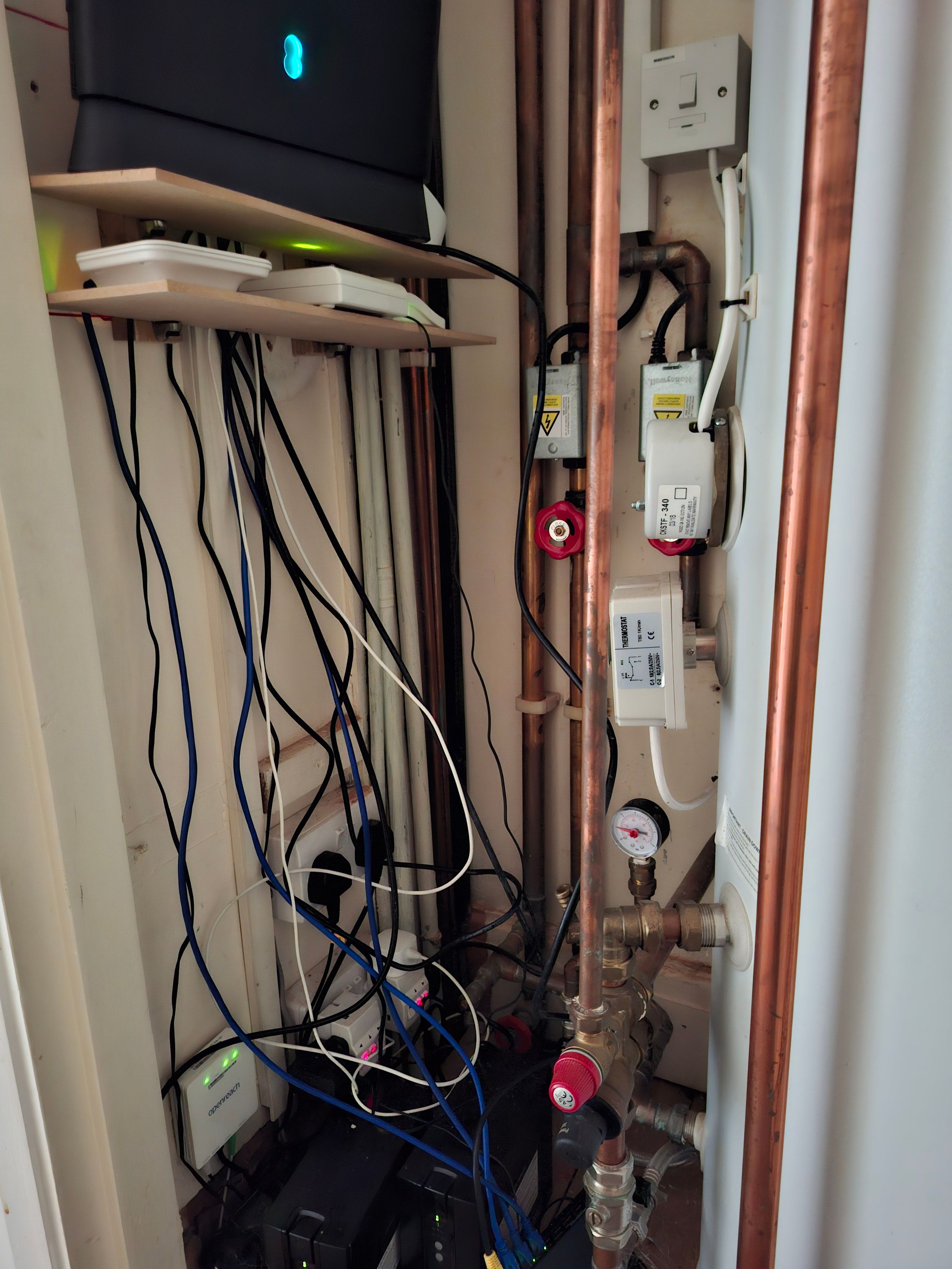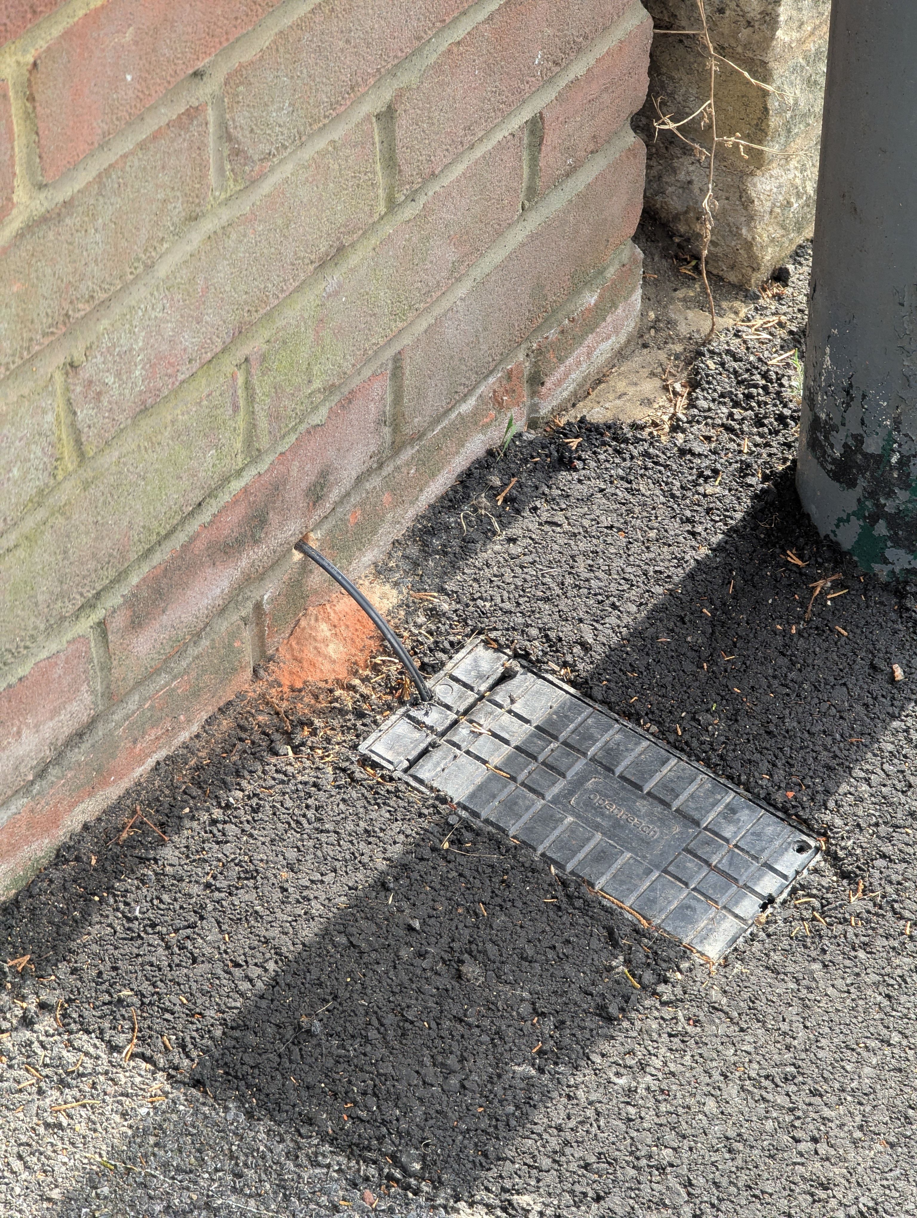 There is no space in that corner (or spare power point) hence the original Openreach install runs about 8m internally from the entry point into the sitting room where the existing master socket and router is located. Happy for them to pull the fibre optic through the same route. I will point this put out to them with tea and biscuits.The installation photos below were done about 3 months ago, as per the previous post with the wires exposed in the street. It took a complaint and about 2 months of waiting before they finally installed a shield.