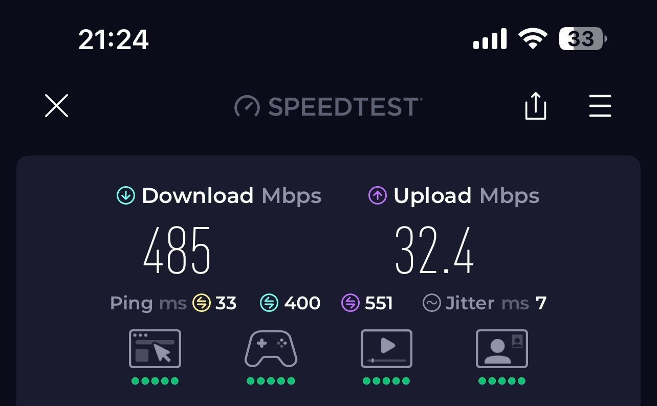 I’ve been using Three 5G home broadband for a couple of years now with no issues. Ping can be slow at times and upload can be around 3mb during peak so not good for gaming or video conferences. Just did a test …..