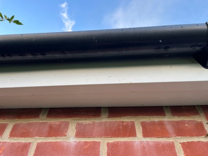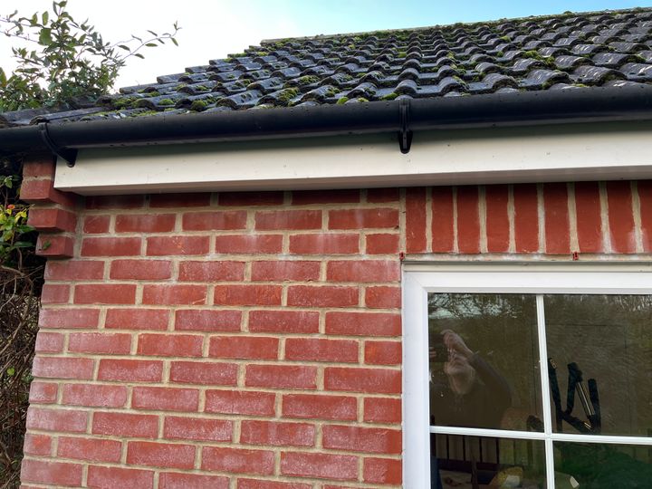 Nor that I have sorted out my "plasterboard tent" I need to try and resolve the problem which brought it to light, which is wasps nesting in the roof space above a single-storey extension. The wasps are accessing the space by crawling through the gap between the soffit and the wall (picture below).