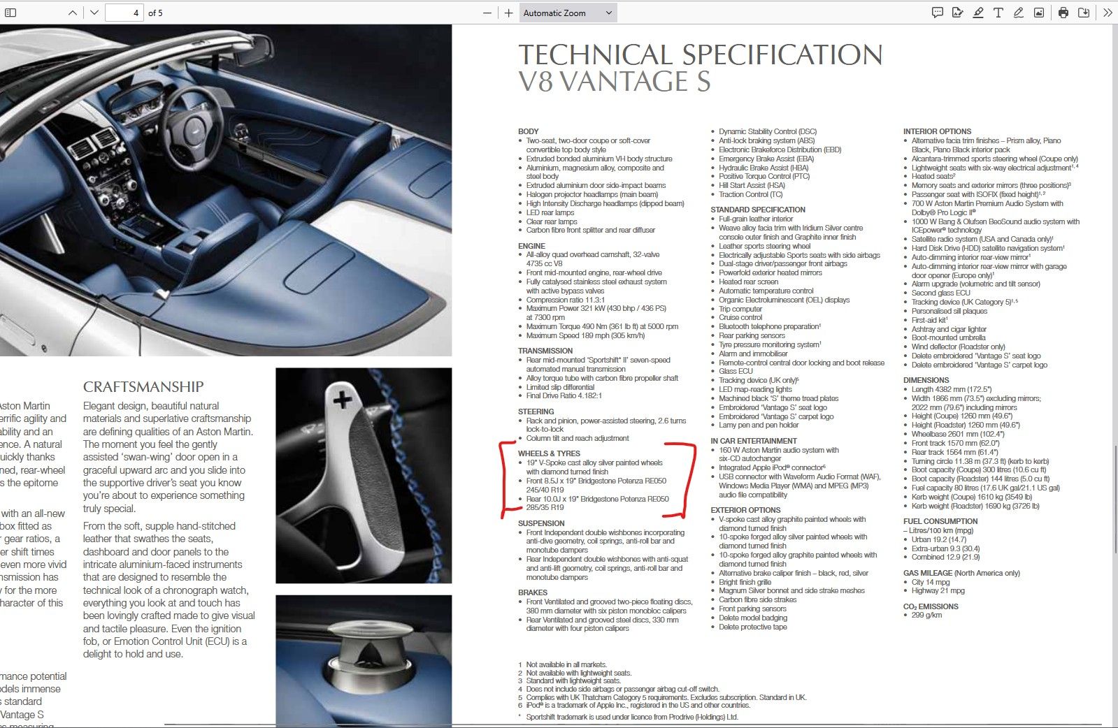 Don't forget the Owner's Guide also says 19 x 10JPlus see your brochure, and raise you a brochure
