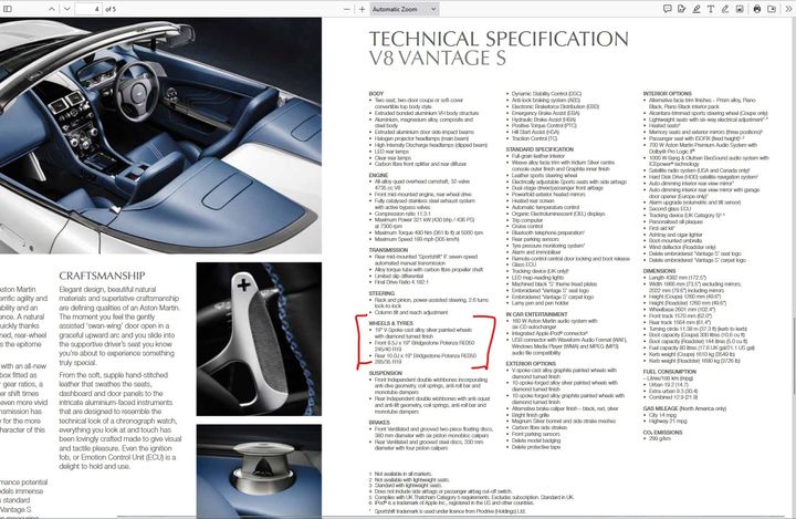 I see. Well, I´m sorry that you got confused by such rather sad errors in the 2013 and 2016 Vantage range general brochures. I had never noticed these errors before. So, thanks for the pointer. Nice to have cleared this up now: V8 Vantage S always had 10.0J on the rear axle just like Vantage N430. Pic of my V8 Vantage S rear wheel rim (10-spoke forged alloy silver painted wheels):