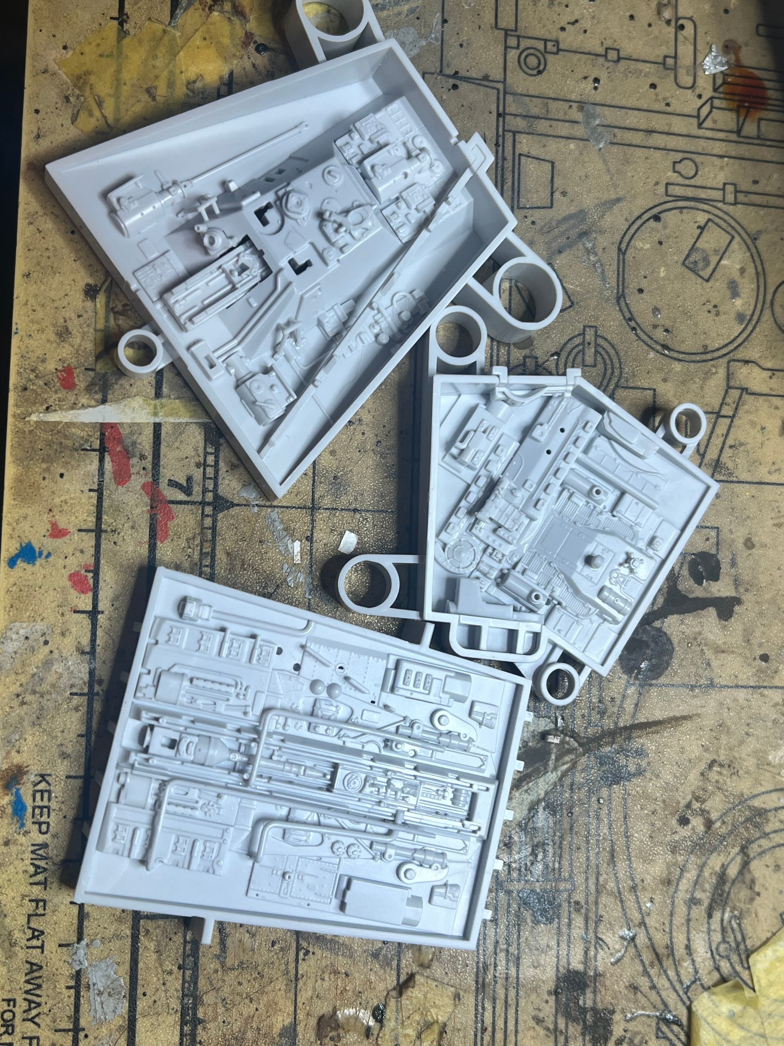 Part of the fun with these kits is spotting the kit parts used in the original miniature, there are tank mantles, engine decks and roofs plus a few battleship turrets and even half a lunar module hidden deep in one of the open bays.