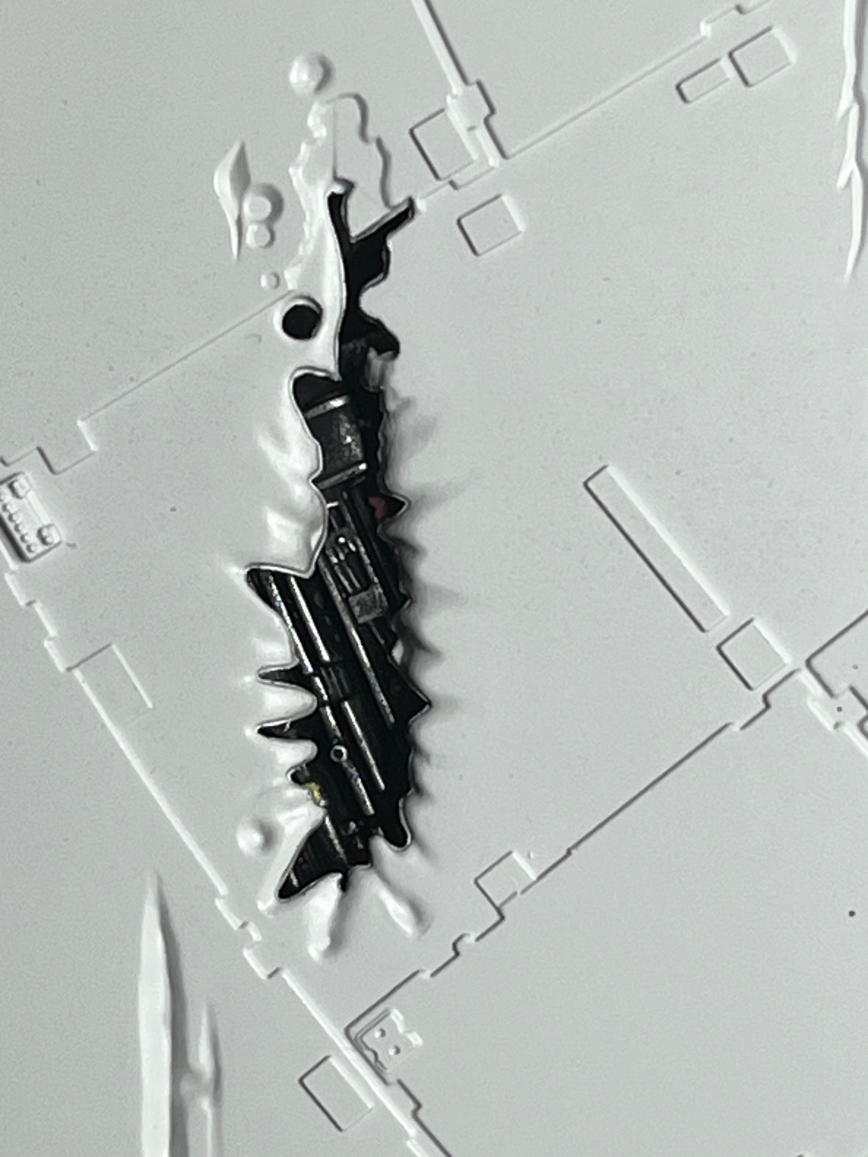 I used a little bit of Tamiya clear blue on the light channels to give it the blue glow seen in some shots. Paint is AS-12 from a rattle can over Mr Surfacer black primer, some of the black remains visible which I think gives a sense of depth to some of the greeblies.