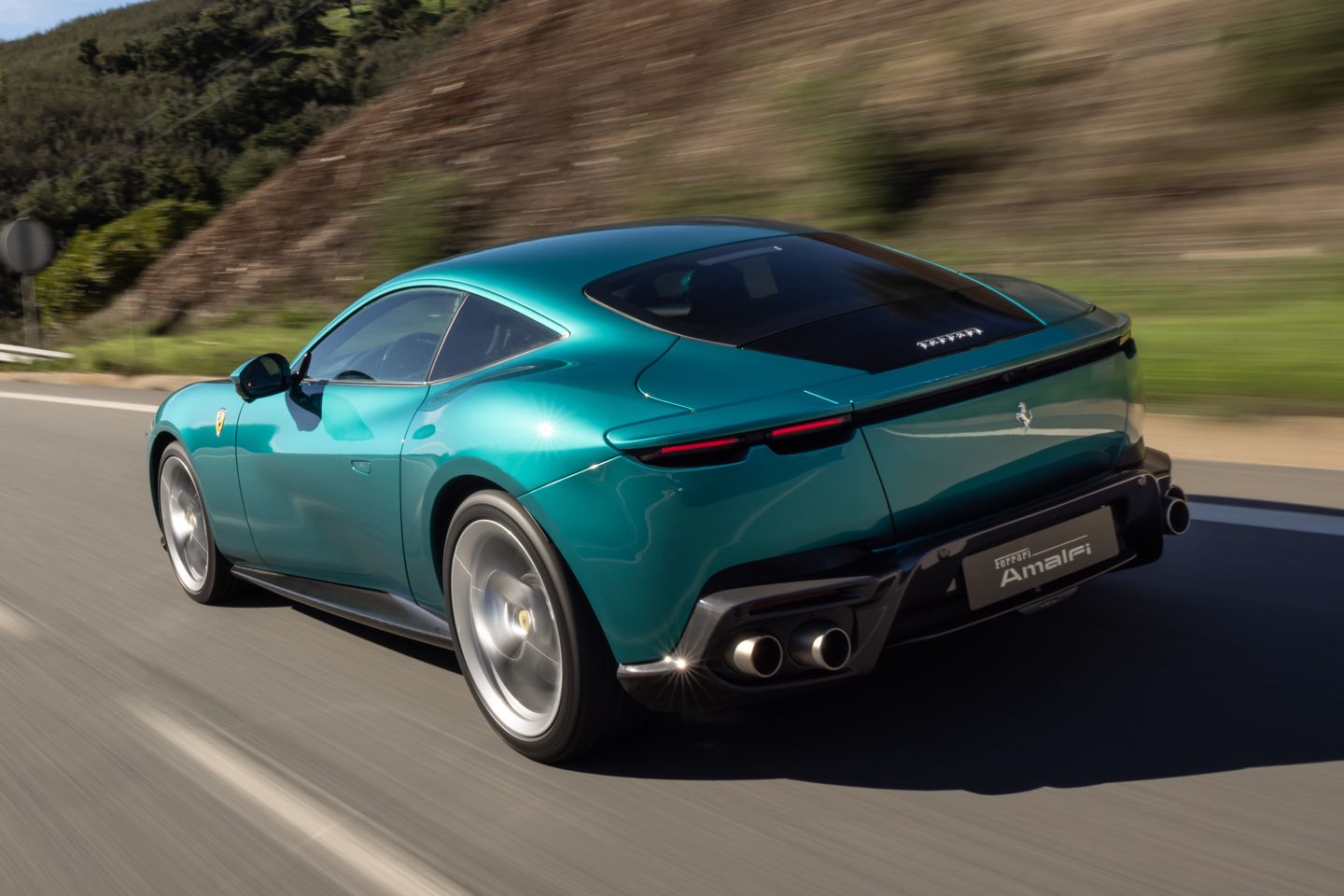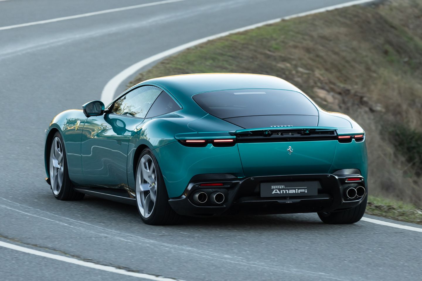 If there’s a drawback to the Amalfi’s extra performance, it’s that it feels slightly more nervous on a slippery surface thanks, presumably, to its stiffer rear axle. But there’s no denying the added lateral load it can generate when the surface dries up, nor is there anything to suggest the brake-by-wire system has hindered the loads generated by those carbon ceramics. There might be a little less in the way of pedal feel (we'd need a back-to-back with the Roma to be sure), but at pace, modulation is easy. And overall stopping power is immense and consistent, helped in no small part by the underside’s new fins.