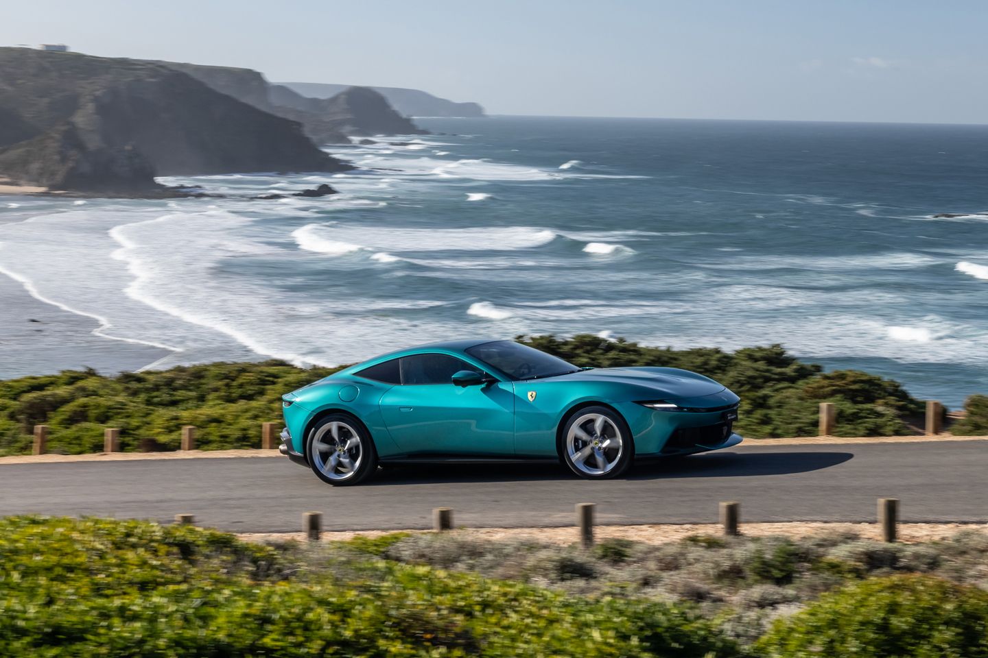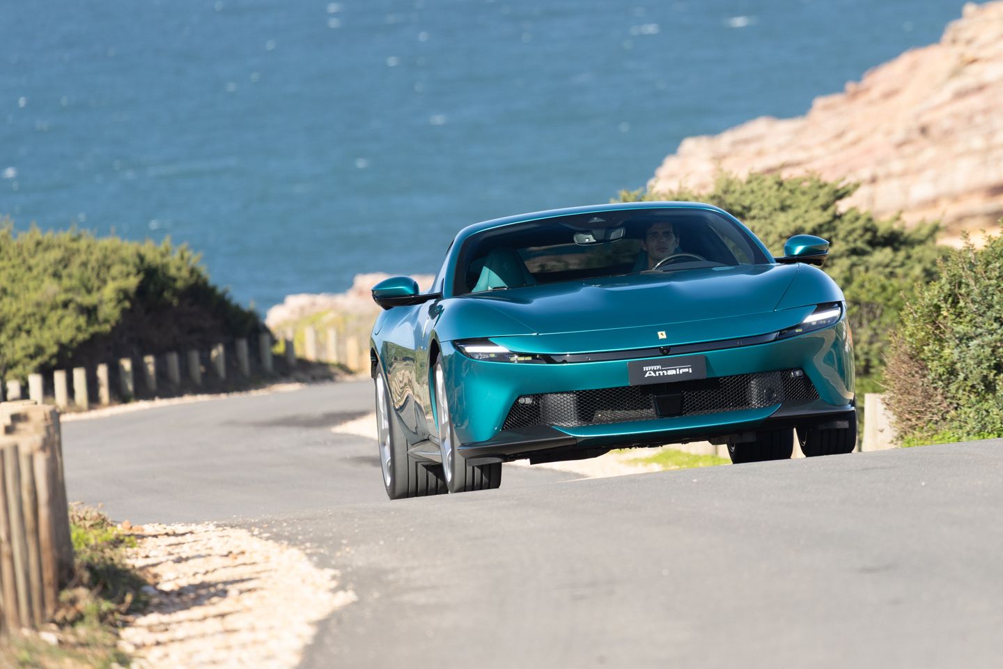 Nobody will be surprised to hear that on a grey, damp December morning in southern Portugal (ironically chosen for its reliable sunshine), you’re eminently aware that the Amalfi is a rear-driven car. In contrast to bolted-down all-wheel drive rivals from Porsche and Bentley, even the laziest prod of throttle on cold tyres can have the traction control reining things in. But it’s the way the Amalfi’s power is trimmed that illustrates the improvements to the software behind it all. It keeps things in check without unnecessarily spoiling the fun, so much so that even on a slippery road it doesn’t take long to realise that clicking from Wet to Sport on the Manettino dial (which thankfully never fell foul of the Roma’s touch-sensitive fiasco) is perfectly sensible.