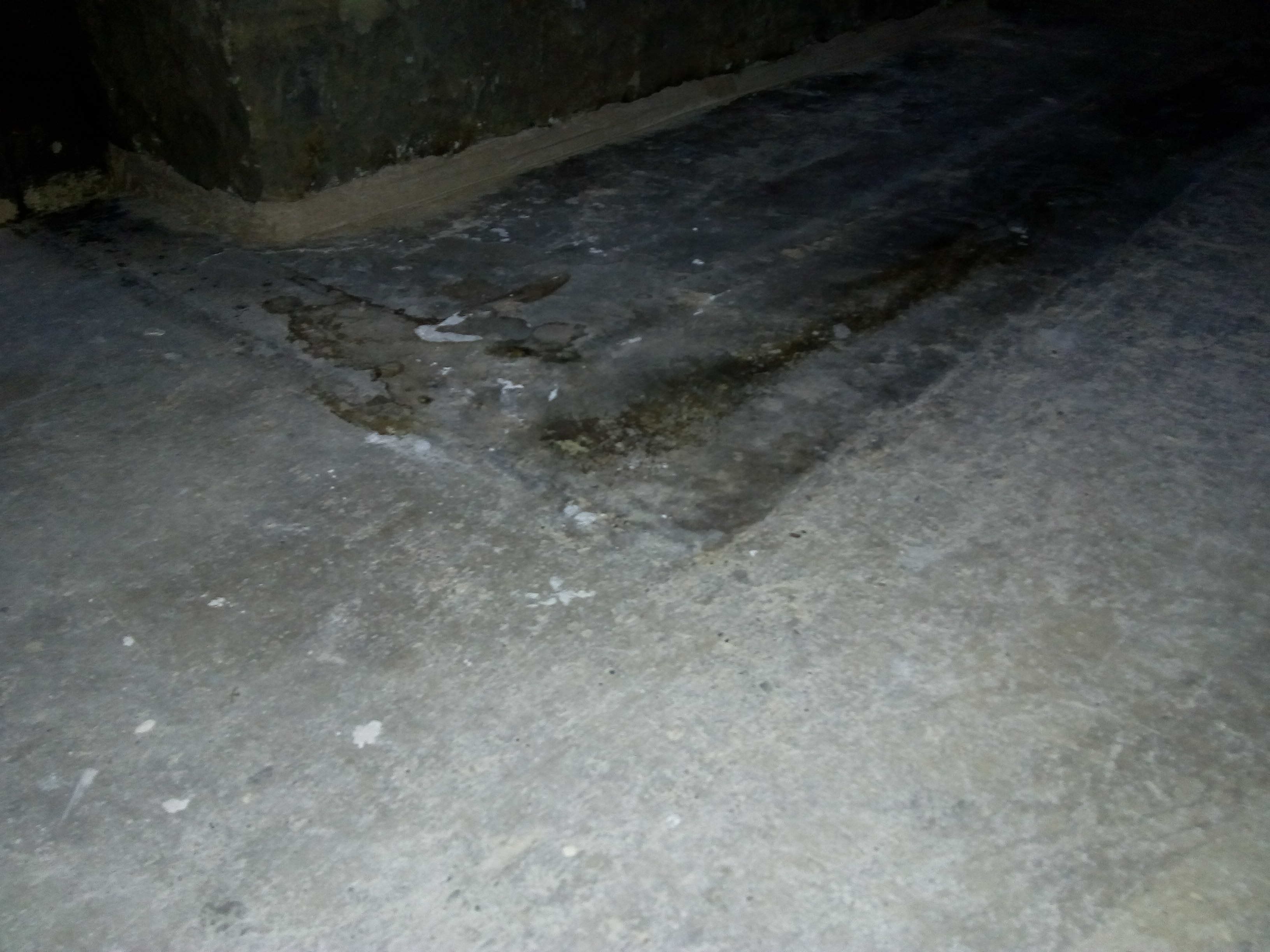 Having cleared the room and ripped out the manky carpet and underlay, its clear the floor is a bit uneven near the hearth. There's a small (3mm) step between the slab and hearth stone which makes the new boards rock. The slab is old, dry and well polished.