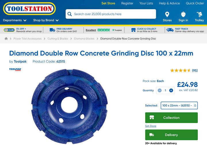 With the issue around the fireplace, if you have got a 4 1/2” grinder and a vacuum, you can get a floor grinder kit from Amazon, again about £30. Set up correctly you won’t get any dust.