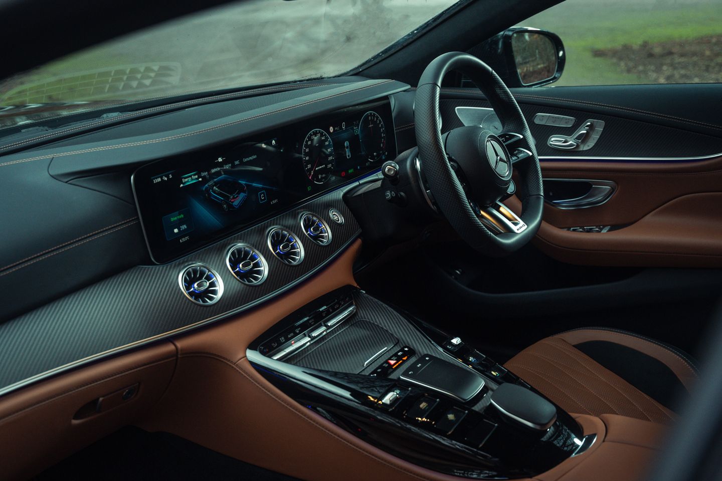 It’s some way from a perfect Mercedes, sure. While eminently tolerable and supremely disciplined, the GT’s ride isn’t what you’d call pliant in any scenario; those secondary intrusions that a less focused Benz would absorb don’t go unnoticed. That small 6.1kWh battery pack somehow robs the boot of an inordinate amount of space, while the car itself still struggles to muster much more than 20mpg. And it must be said that newer AWD systems, such as the one found in the BMW M3, now feel a bit smarter, metering out the requirements of each axle more smoothly and swiftly. Oh yes, and as you see it here, this Olive Metallic example is £190k.