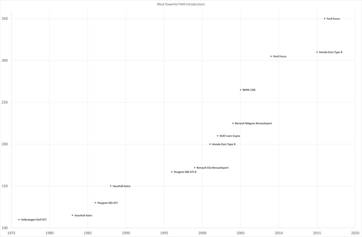 Yes.I would say that the increase in power has been driven by the increase in size and weight, the widespread adoption of turbocharging, and the simple fact that given the choice between two hot hatches people will tend to buy the faster of the two. So as the state of the art of engine tech has moved on, more power has become possible, and no manufacturer wanted their hot hatch to look under endowed.