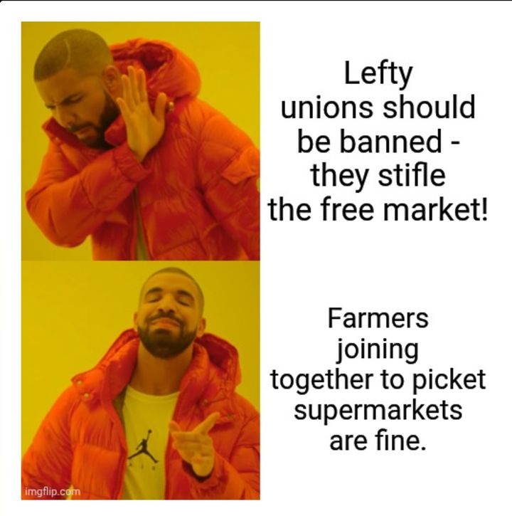 I'm not exactly seeing a long queue of supporters for the farmers, which does slightly cancel out your meme.