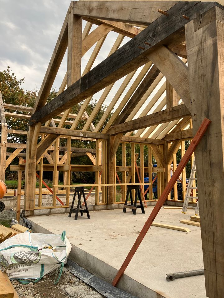 I know there are a few old threads about oak garages, but prices, suppliers, and materials have changed a lot in the past 5 years, so thought it was worth starting a new one.My builder roughly estimates about £5000ish for install (Concrete pad dug and poured, erection of kit, roofing, supply and slate the roof, couple of lights wired in). He's done a few of them in the past.