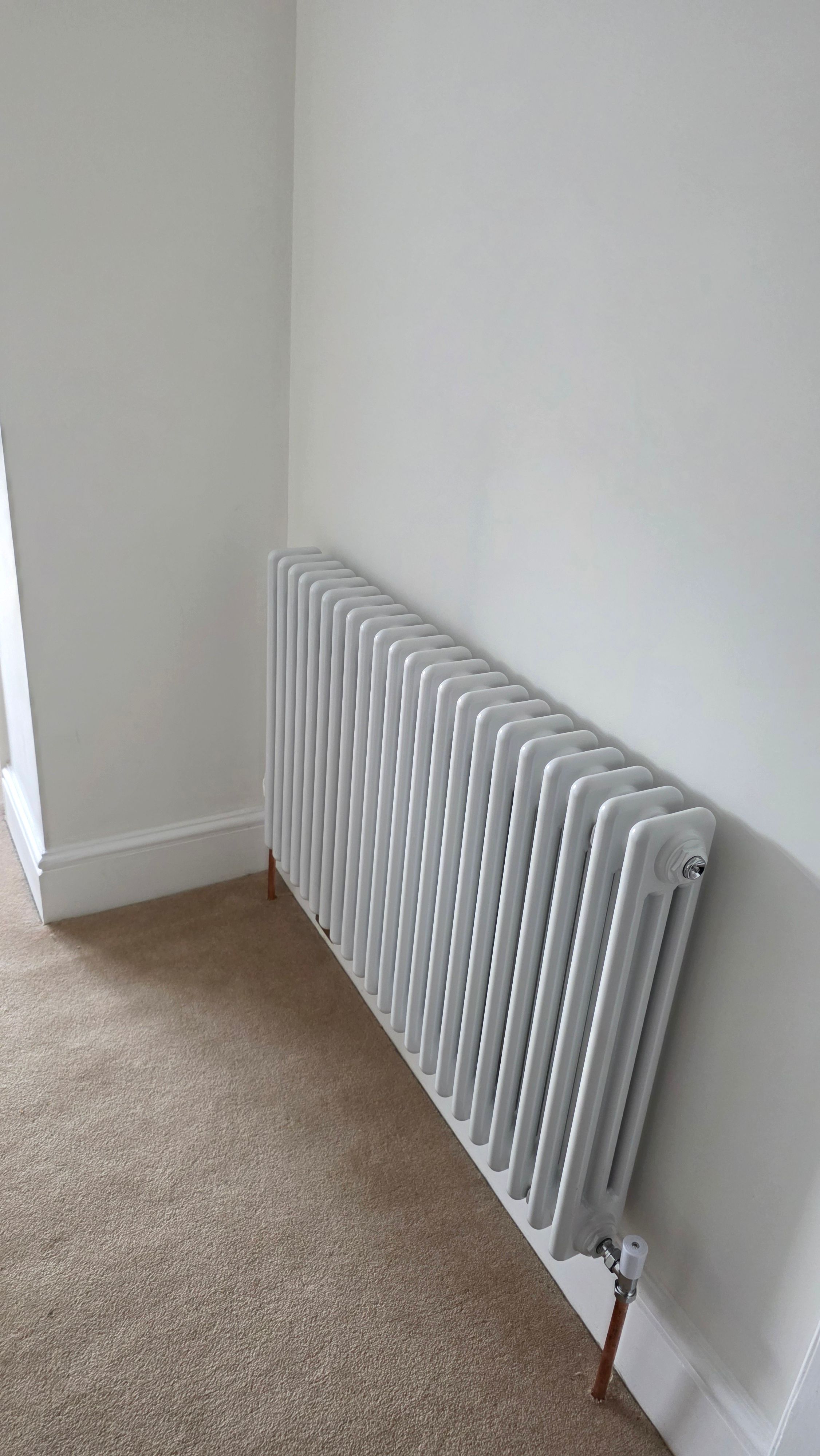 A plumber added a radiator to one of our bedrooms that for some reason didn't have one. It's a three column retro style (but brand new) radiator.