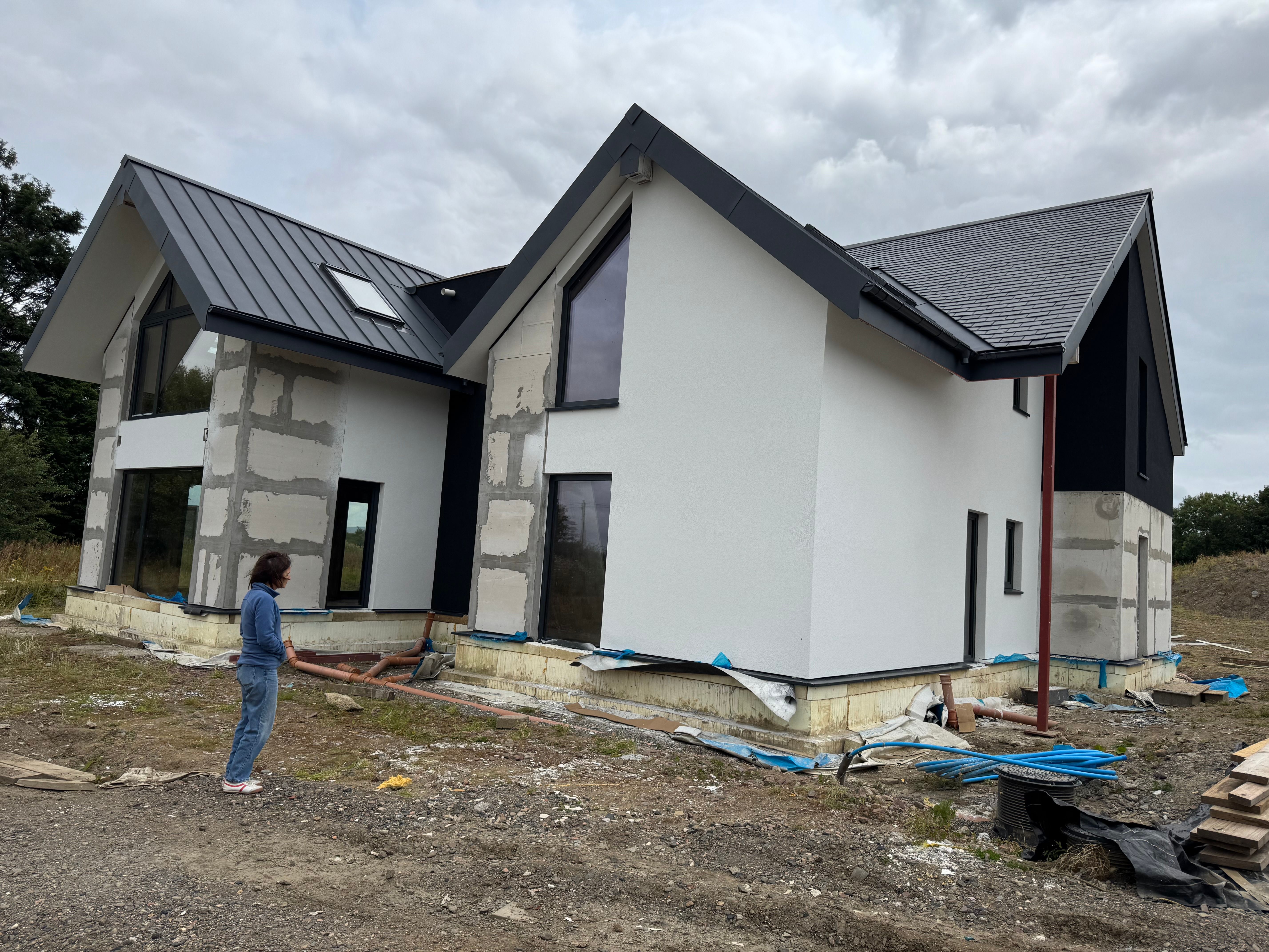 The self-build got done with built-on-site timber frame. PIR insulated and wooden clad. The commercial project is getting done in block.