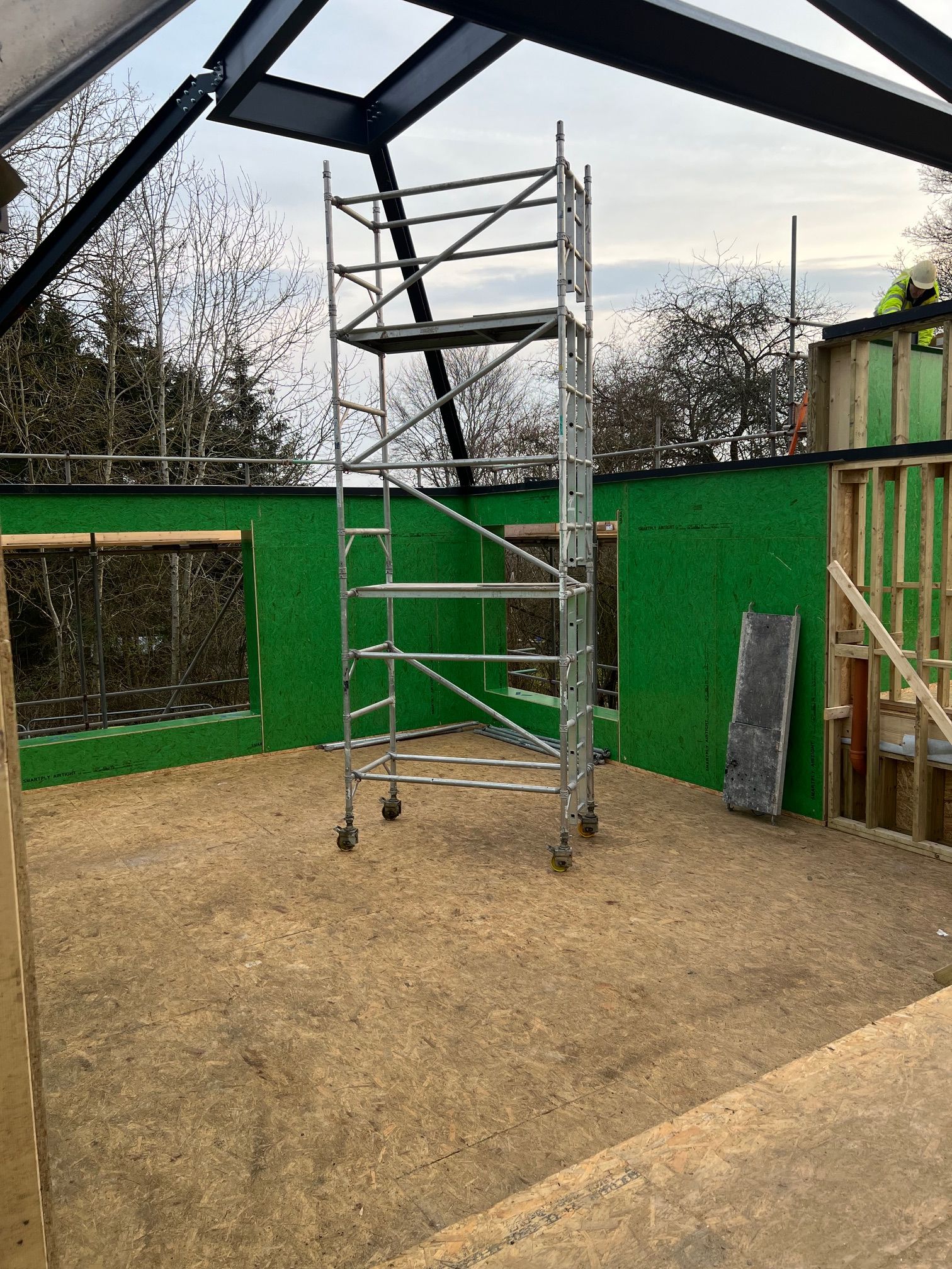 We went with a timber frame construction, our panels were manufactured offsite then brought in via trailer loads for assembly.