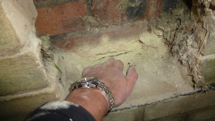 These will be fairly easy to deal with as the mortar is lime based and quite loose. The DPC has extruded but was otherwise sound so once cleared the wall should dry out. A 'specialist' had recommended cavity mesh membrane to 900mm high internally to all of them!