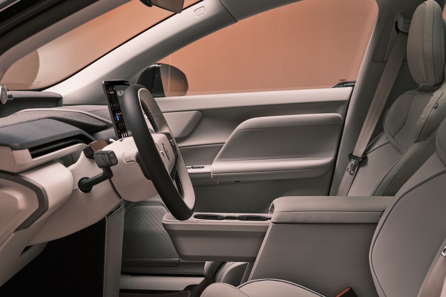 Anyone who’s attempted to maintain a semblance of calm while having to lug everything a baby and a pet requires on a long trip will know how important an interior is. Volvo claims the inside of an EX60 is designed ‘for stress-free, convenient and safe journeys’, taking a lot of familiar XC60 cues ‘but with even more efficiency and refinement, and still elegant and confident.’ So the driver’s view is dominated by a large, landscape screen in the middle, though it appears less drastically pared back than the EX30, and lots of light materials keep it airy. Boot space (this is still a Volvo, after all), is rated at 634 litres with the seats up (and including underfloor storage) or 1,647 litres with them down.