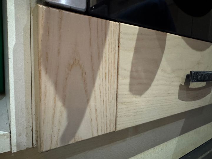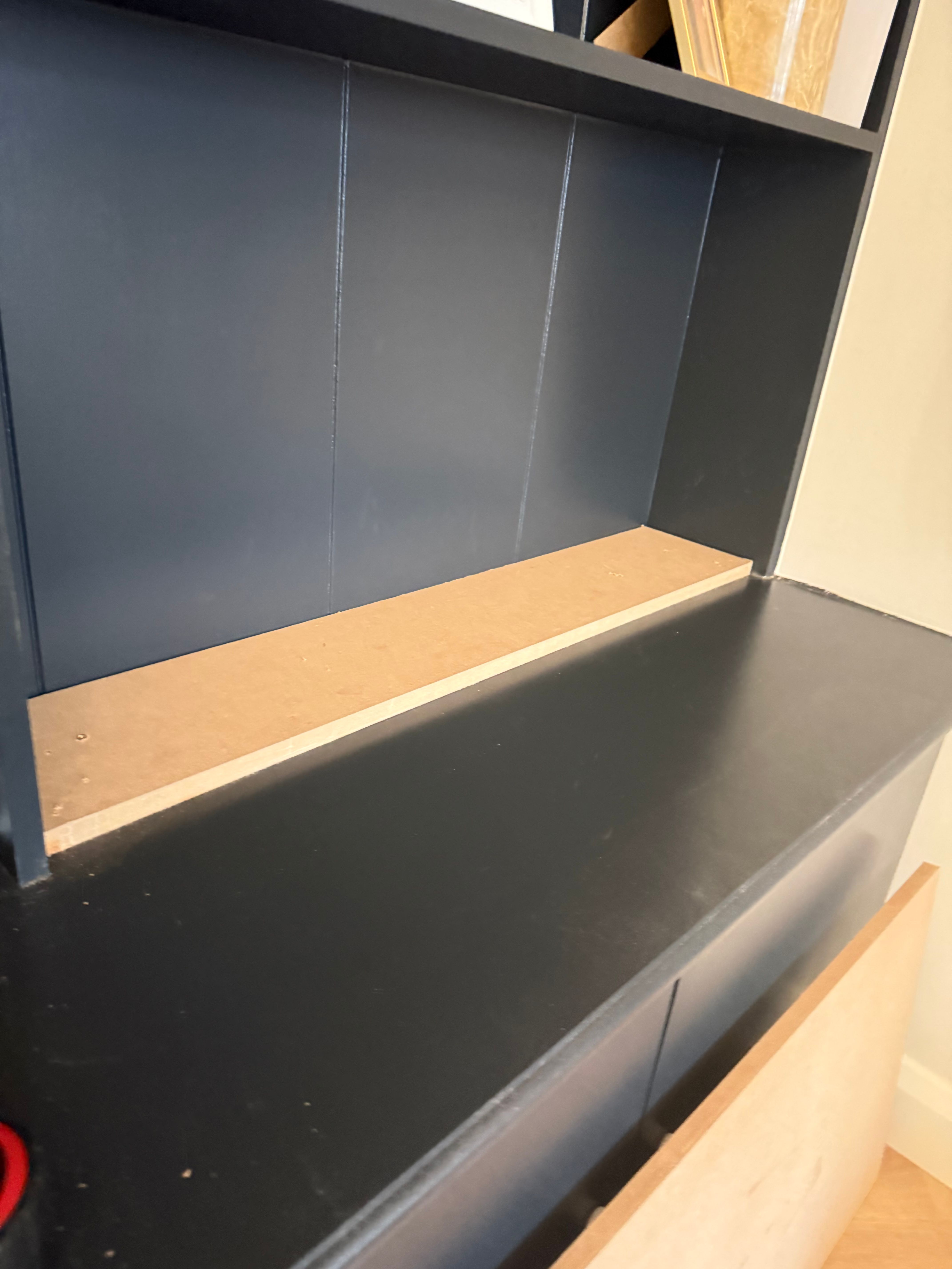 I added the below piece which when the desk goes up it butts up to the bottom piece and which I thought would help attaching a hinge.