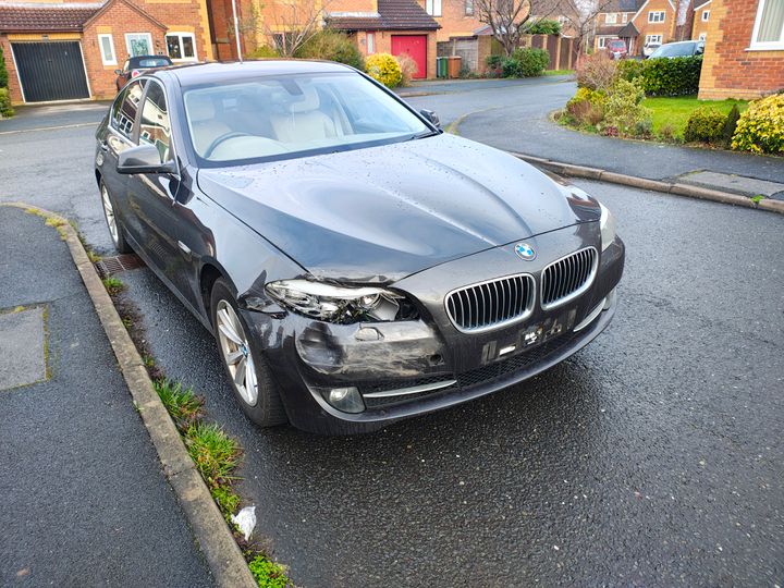 Perhaps it's just had a smash, both front and back number plates fallen off and the owner decided to park it on our quiet little cul-de-sac.