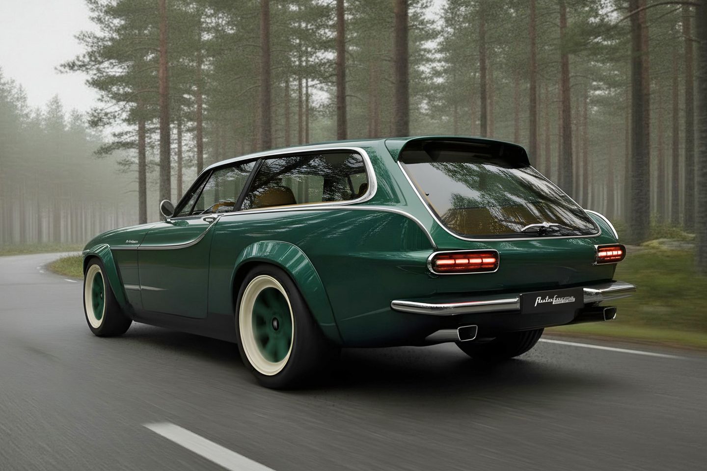 ‘Modern Marvel, the green render, brings more power and sharper handling alongside ‘contemporary design solutions.’ Then there’s ‘Forward Fashionista’, the ultimate evolution of the Norrsken concept and launch spec for the project. That gets the Volvo T5 engine, quicker steering, ‘modernised’ transmission and drivetrain bits, plus better suspension and brakes. Autoforma hasn’t confirmed a power output for the five-cylinder, though it has suggested that the overhaul has been focused ‘on engagement, balance and everyday usability, rather than headline figures’. So it probably isn’t another 400hp maniac, despite what the pink wheels and interior (!) might suggest.