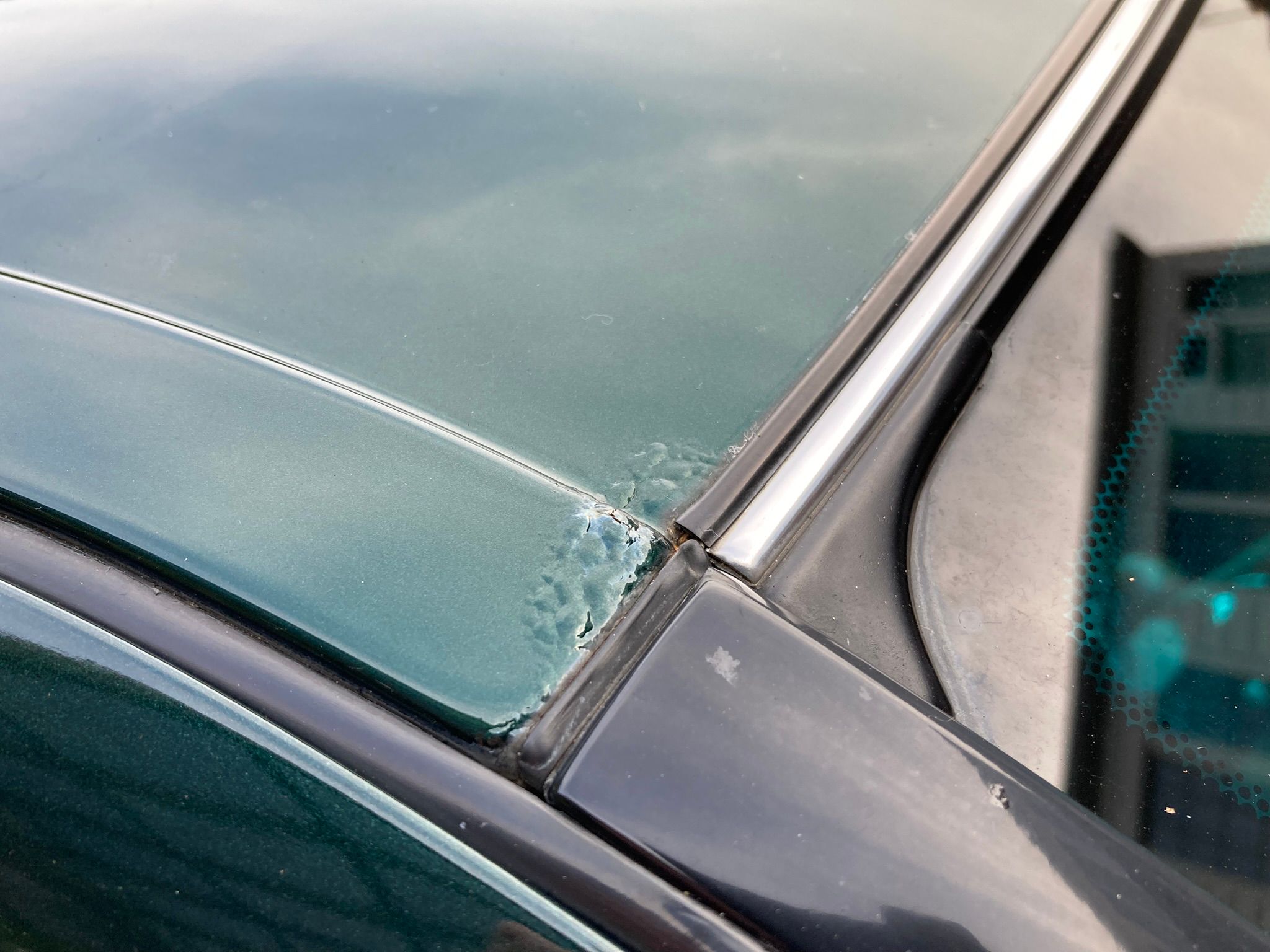In September 2025 it was bodywork time, the vendor pointed out some marks that needed doing, and I had noticed some more. Both rear arch lips had started rusting, mainly road rash in front of the rear wheels. The jacking points had seen the odd block of wood rather than proper jack pads and there was rot starting just above the windscreen on the drivers side.