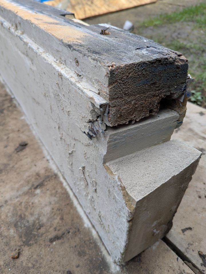 Just planing on making a door out of ply and a load of 2x4 timber. Probably cut the blocks with a disk on a grinder from both sides and chisel anything left over.
