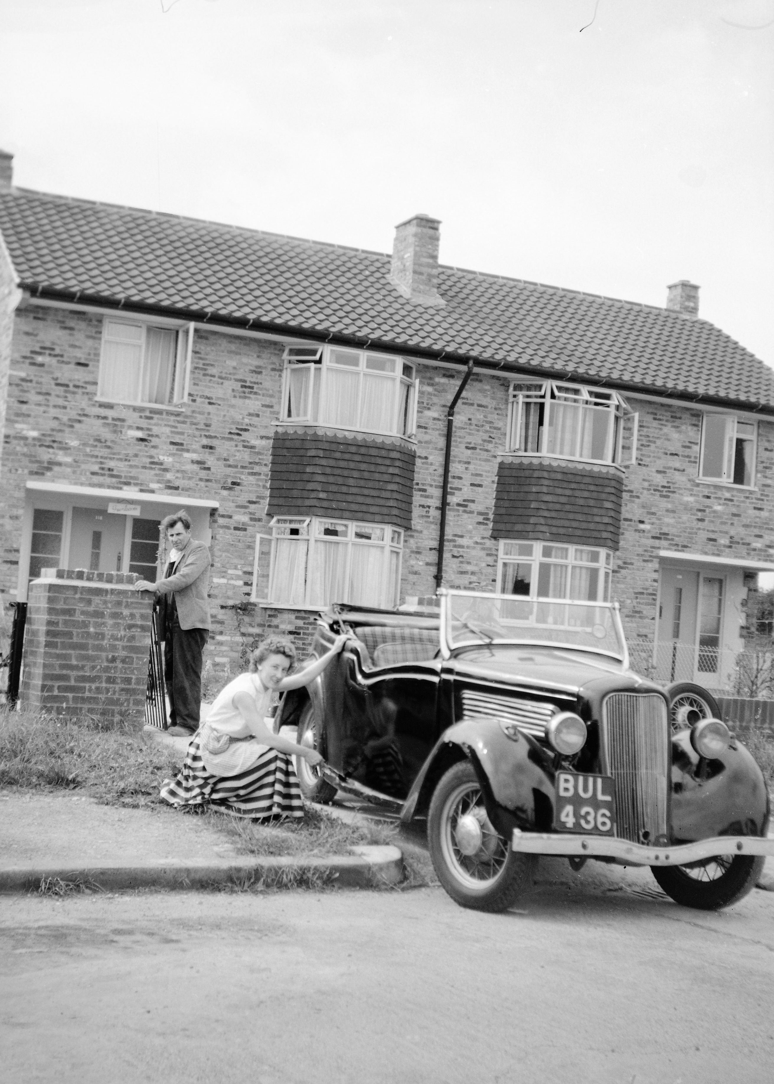 May be an unusual request. My dad often talked about his first car but it was probably just before my time. He always referred to it as BUL 346. I had never seen a picture of it. I am just getting some negatives digitised and came across these two. Thats my mum next to the car with my dad s brother at the gate at his mums house in Iver. The second one is of my dad driving the car. I have also attached his insurance renewal.