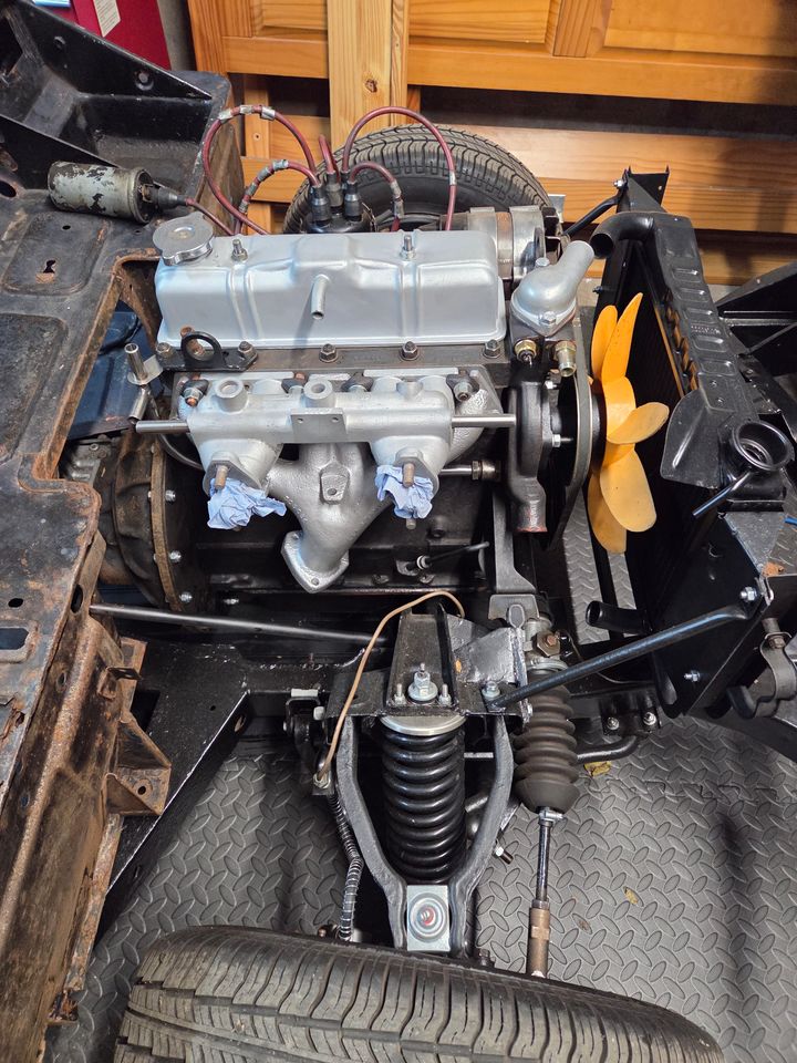 However, the engine and gearbox were checked over, and are fine, refitted to a reconditioned chassis with a re-cored radiator. Fresh oil in.