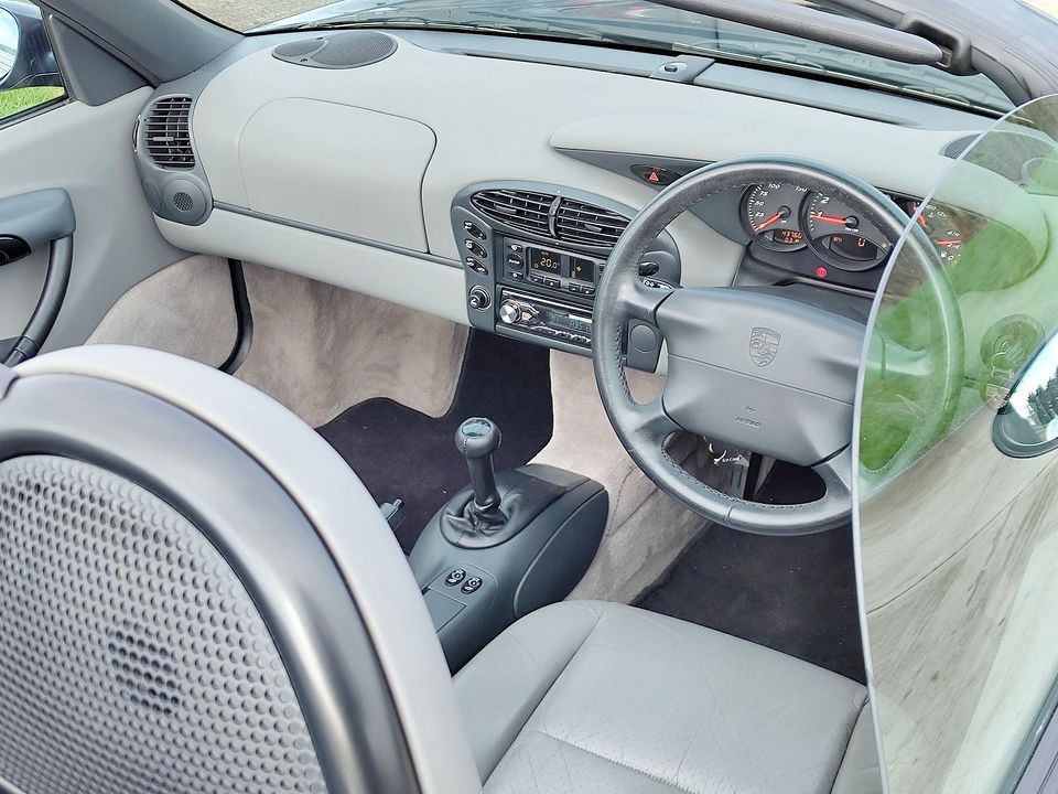 An awesomely base spec 2.5L 1998 Boxster with a depressingly grey interior and a proper poverty spec with the exception of having climate control.