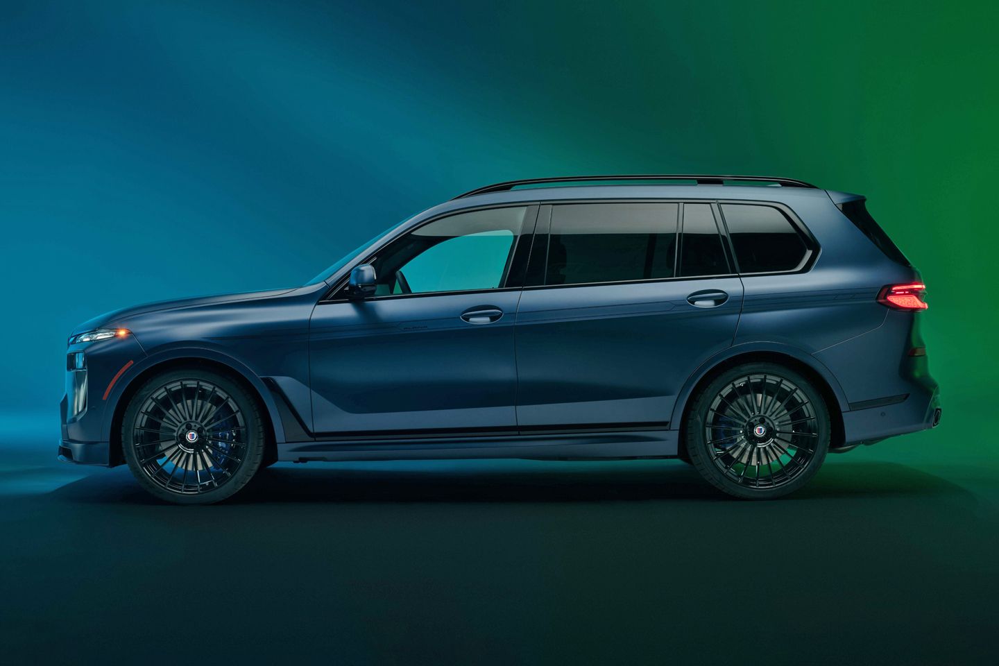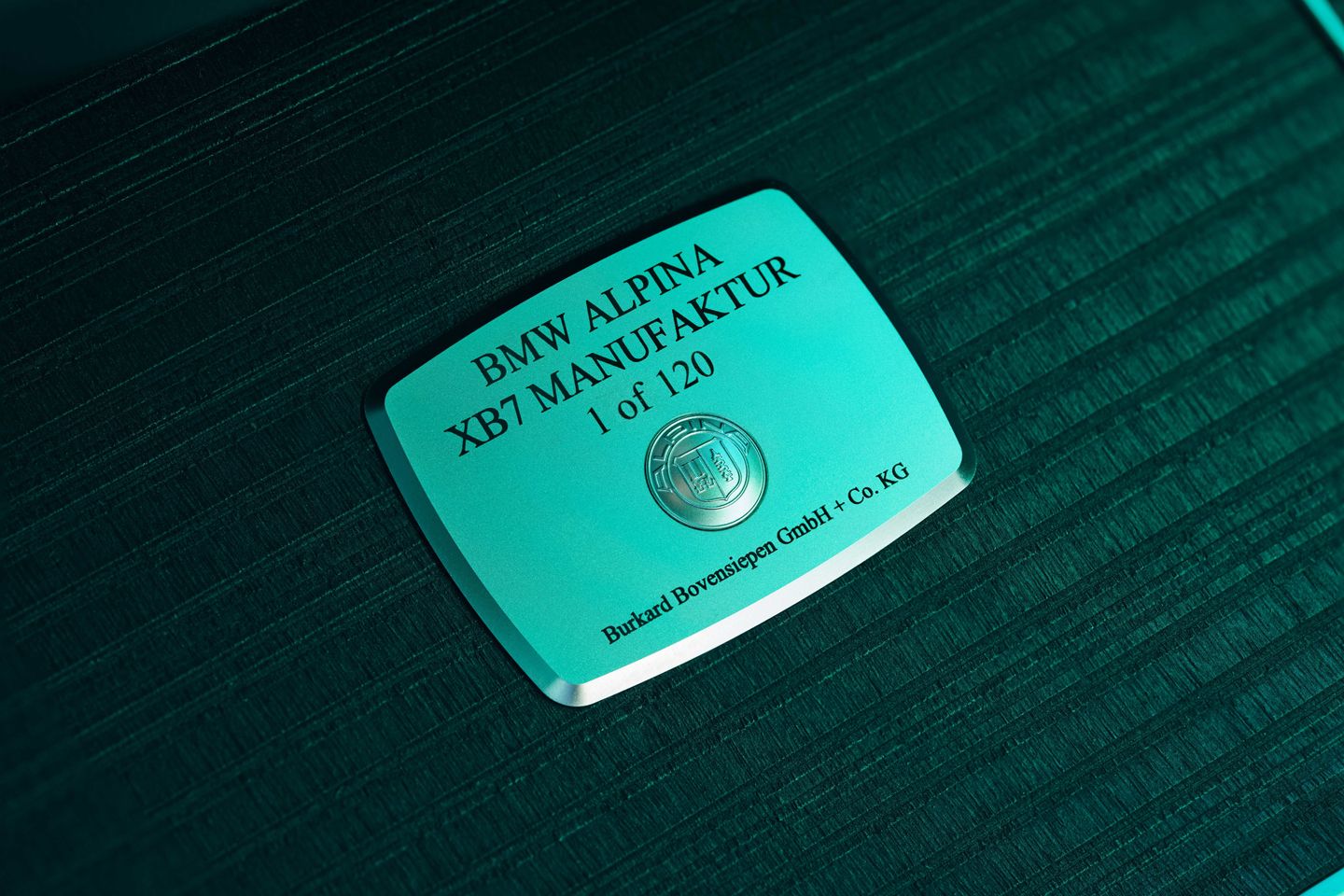 Apparently, the XB7 has never been previously offered in Frozen Alpina Green or Frozen Alpina Blue, but those are now your choices. Elsewhere, all the brightwork (grille, rims, exhaust tips, etc.) has been blacked out, and you might notice the same goes for the pinstripe decals on the flanks. If that weren’t enough to pick the limited edition version from a herd of XB7s, there’s additional badging on the tailgate and a laser-edged Manufaktur logo on the B pillars.