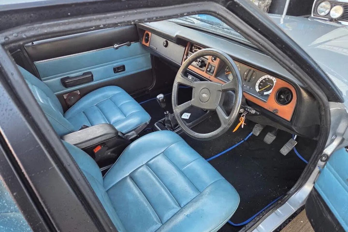 We had a 2.0S back then, I loved is! It had a black dash rather than the wooden one, steel wheels and the seats were black cloth with deckchair stripes. Front driving lights were standard on it and ours had the oblong fogs under the bumper fitted, it was light blue, no chrome and low S stripes in silver.