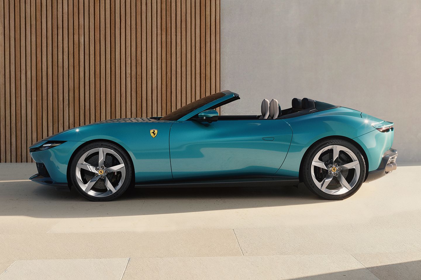 Handsome, no? While recognisable from before, this soft top Ferrari looks even more glamorous than ever, perhaps thanks to styling cues borrowed from more senior models in the range. Ferrari suggests that the design language ‘blends refinement and energy, taking shape as a monolithic, sleek and sculptural speedform that gives the car a modern, fresh character while retaining unrivalled elegance.’ The red seen here is a new one for the Maranello palette; it’s called Rosso Tramonto, said to be inspired by the colours of the Amalfi coast at dusk - hence the oranegy tint. Expect to see plenty in this colour, as it looks fabulous. What a great set of wheels, too.
