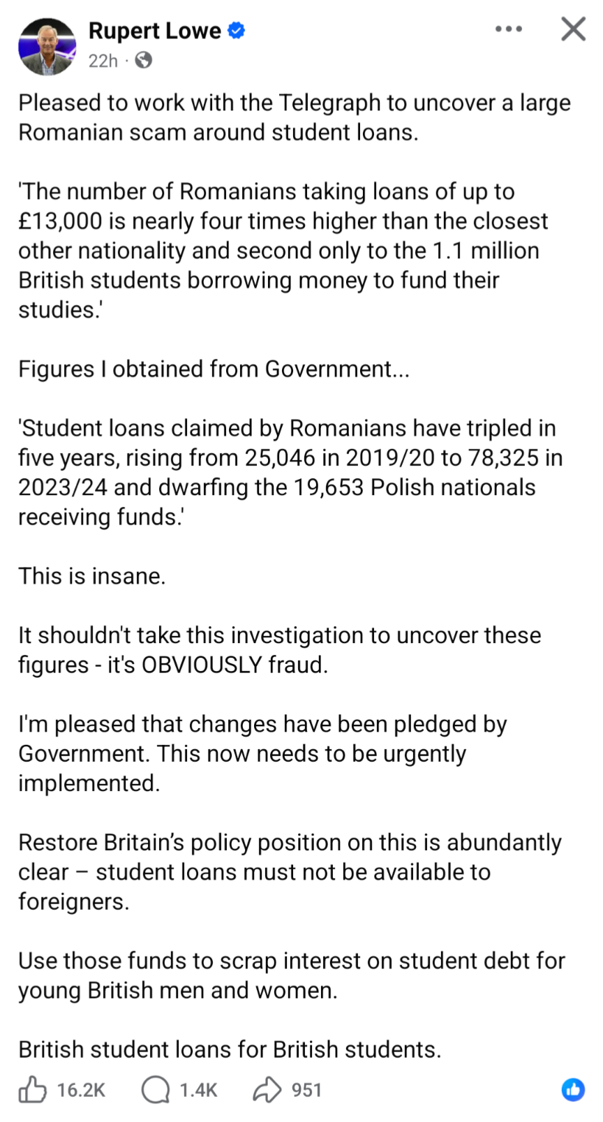 Rupert Lowe and the Telegraph were looking at it yesterday