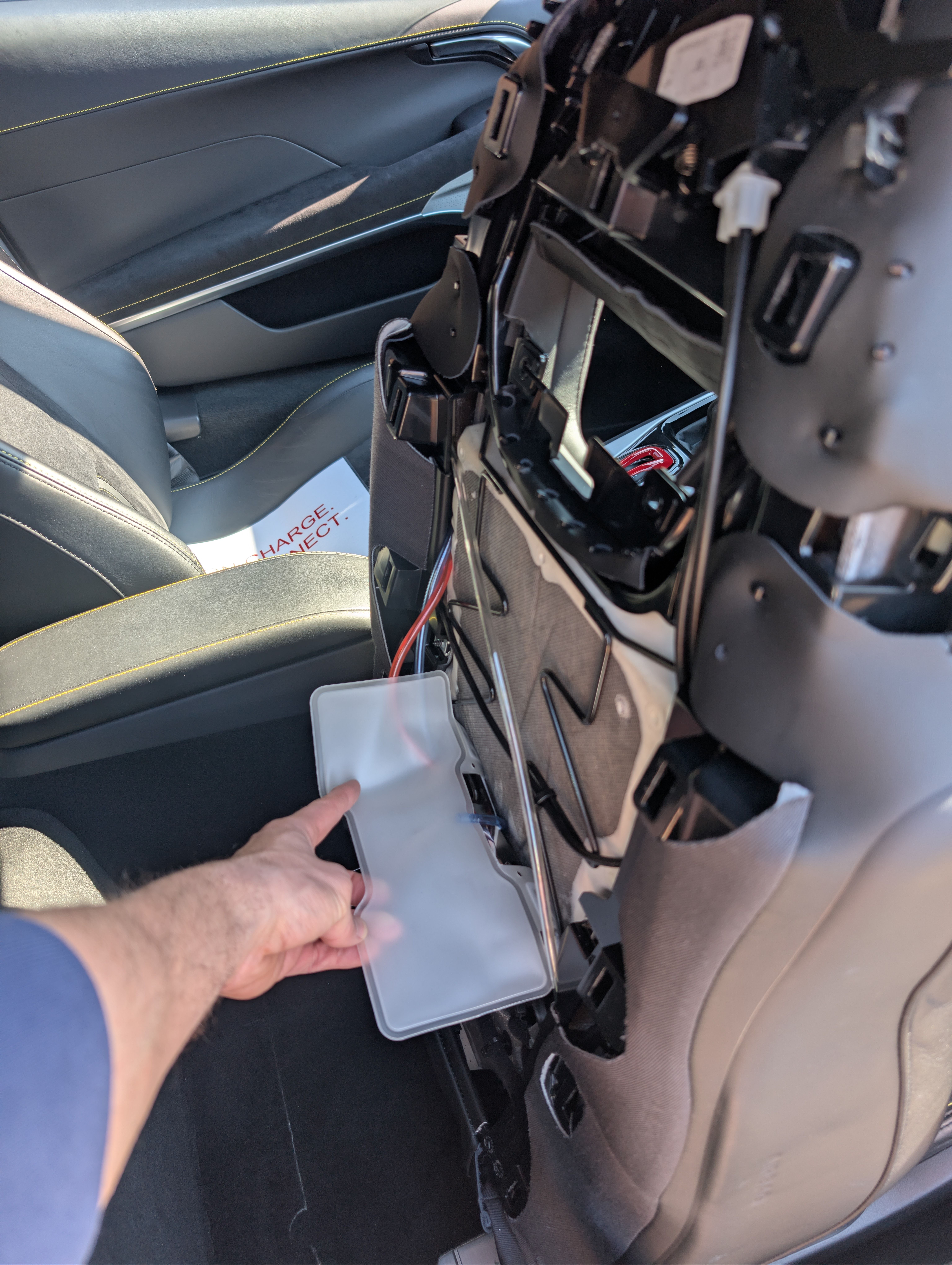 It's a bit hard to see, but on the bottom air bladder there is a plastic guard between the bladder and the metal wiring of the seat, there isn't one for the top bladder (once you unfold them) so I guess they came like that from factory. 3 torque screws and a trim remover was all that's needed to sort it. Five minute job. Interesting about the lumbar support thing, do you think one slipped down?