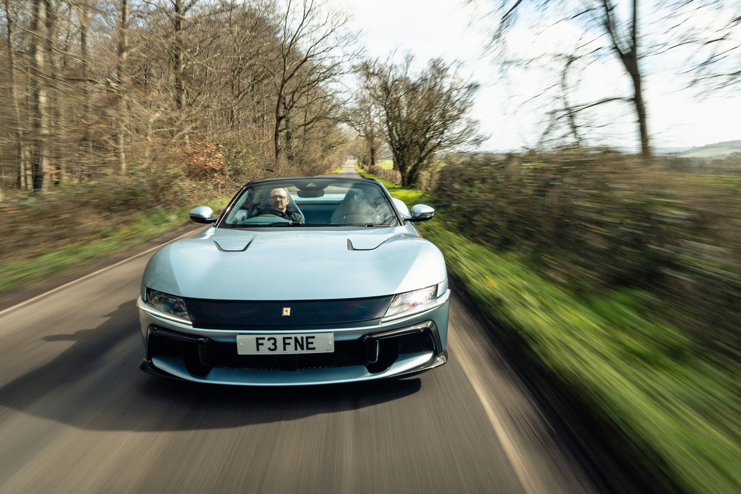 Drive both stripes of 12Cilindri together on a sunny day and it’s difficult not to conclude the drop-top’s the more exciting place to be. Even if the weather’s not friendly enough to fold the roof fully, then simply whirring down its central rear screen should tickle your neck hairs nicely in all manner of ways. There’s visual pleasure too: its tensed, muscular shoulders fill the side mirrors and your view through its canted windscreen is underscored by the sculptured bonnet and its cute vents.