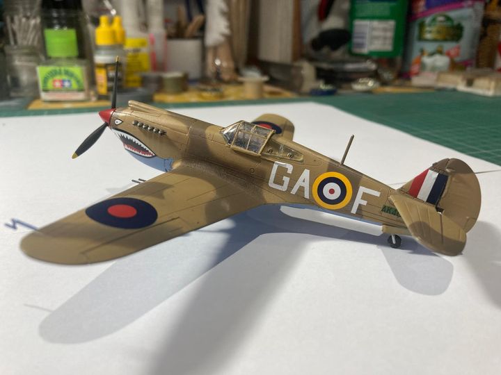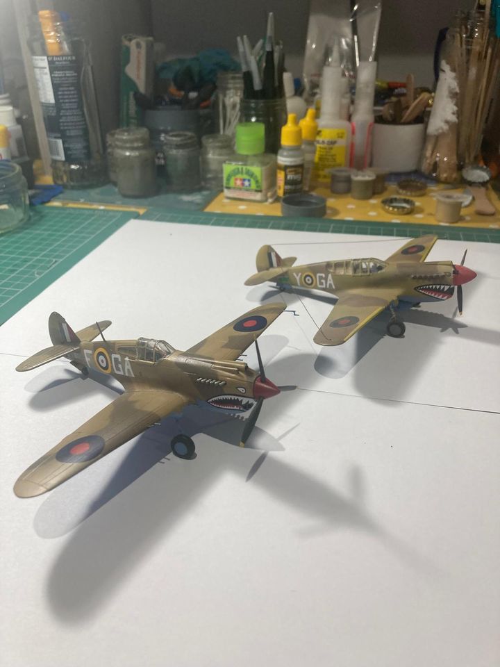 I thought I'd also pose it beside my older build of Airfix's 1960s Kittyhawk kit.