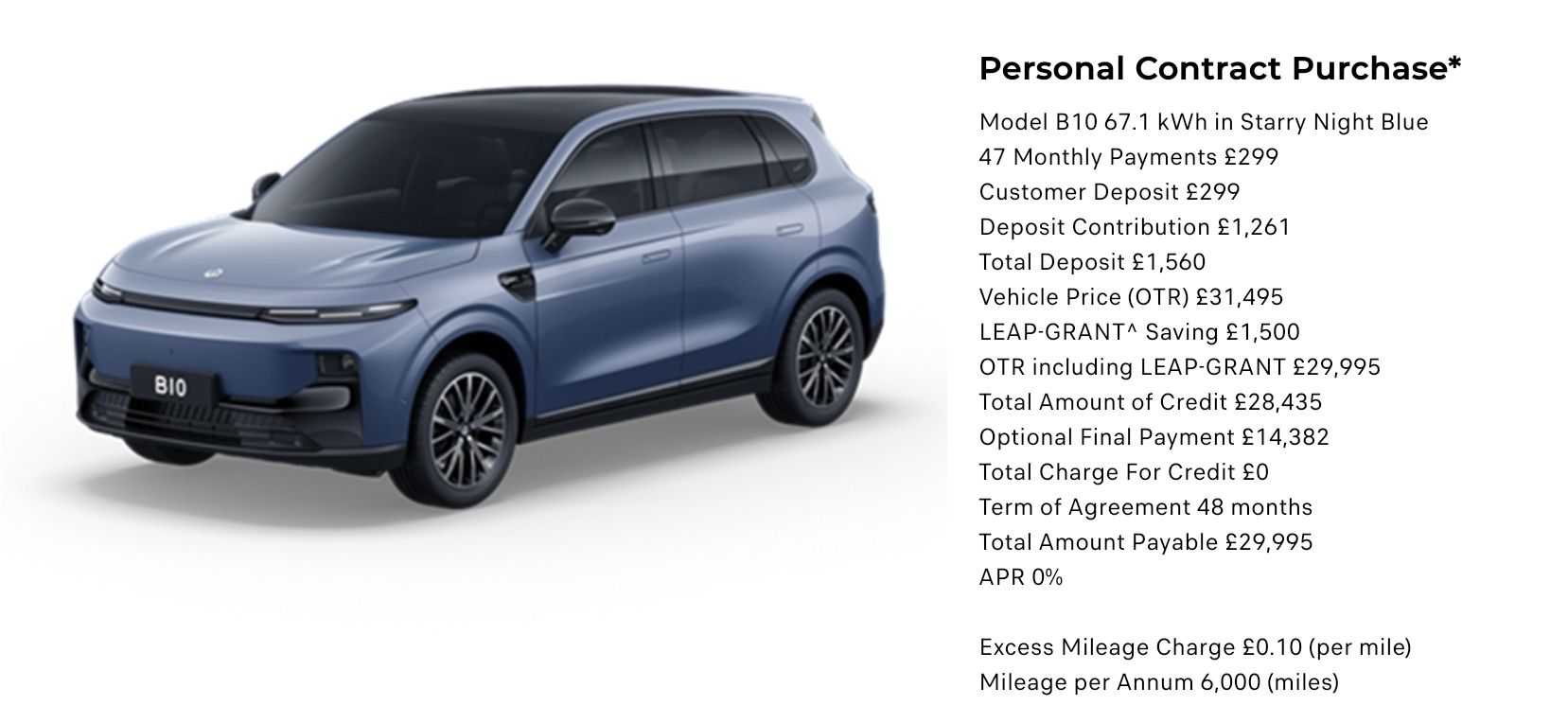 Monthly: £3,999 x 24 (based on 6250 miles pa)