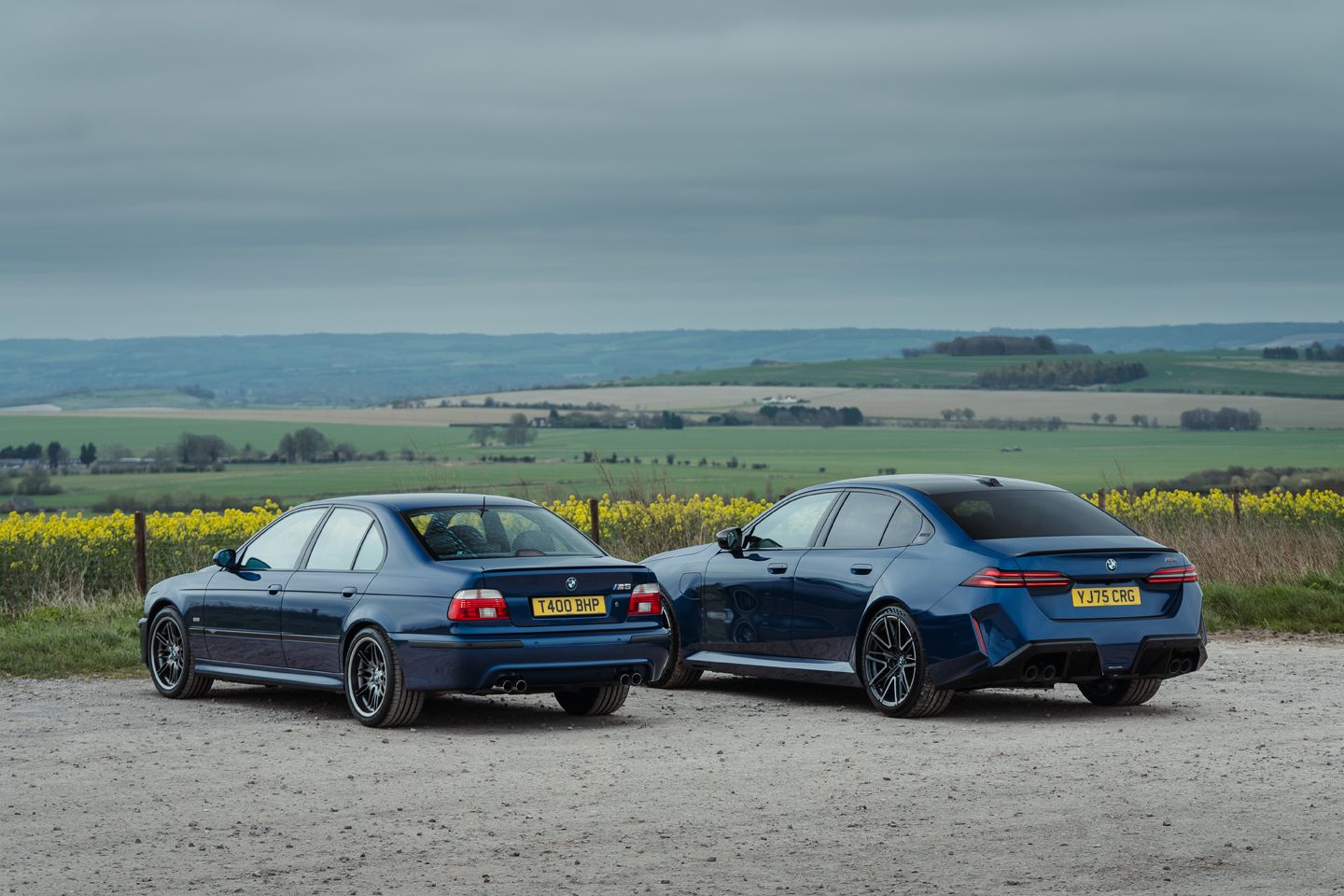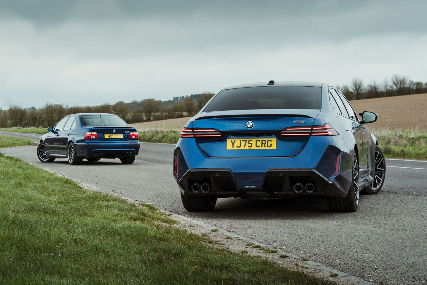 Considered together, these two feel like a perfect diorama of the growing size, weight, performance and technology in cars, not least with the same visual spec to act as the control. Crucially, they both still demonstrate similar strands of DNA. The E39 isn’t a big-hitting thriller on first impression, demanding your commitment to show its true M tricolours, whereas the G90, like all modern M cars, allows its thrills to be more hastily accessed thanks to the quick actions of its paddleshift ‘box, its coddling mid-way stability systems and the cheat-code press of an M button to tense all its muscles in one go. Oh, and the small matter of the instant torque of its electrification…