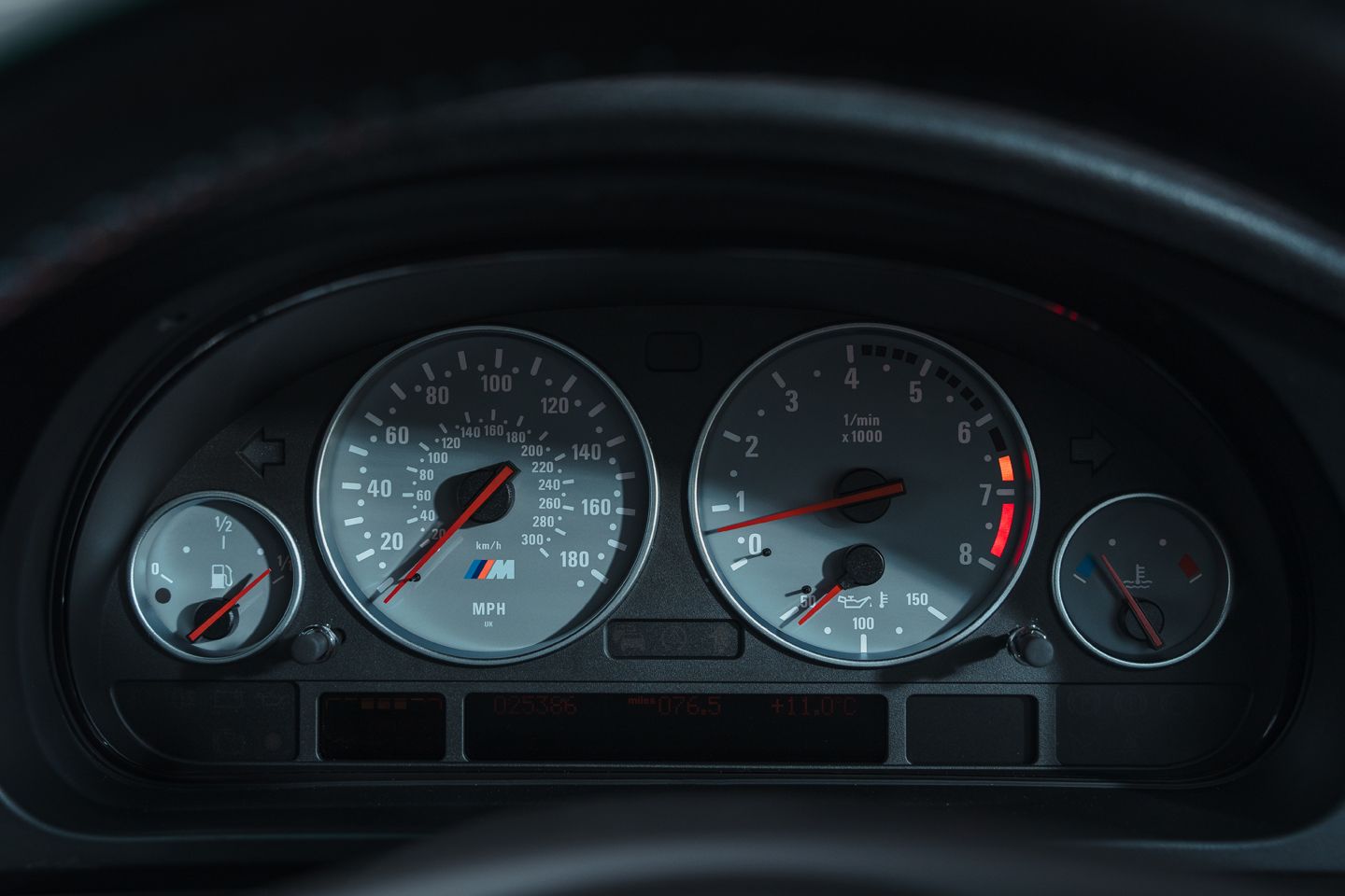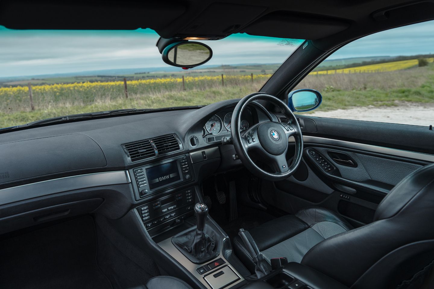 This is my first shot in an E39 M5, and life behind its wheel is a little calmer-paced than I’d anticipated. It feels good for its 400hp when on song, and it’s jolly quick whichever gear you’re hauling – but it requires work to hit the hedonistic heights it’s capable of. With its slightly ponderous manual gearbox and no forced induction, frenzied acceleration is more deliberately acquired than in the three decades of sports saloons that followed in its wake. You dictate its flow with your inputs, not drive mode selections, which is surely music to the ears of most true enthusiasts. But there’s no denying it’s harder work than the newer car. On a challenging B road you can keep it in third or fourth and string together a smooth, subtle flow of maintained momentum and minimal forearm movements as the V8 alters enjoyably in tone and timbre as you go – or wrap your head around its more languid shifts and get stuck into changing gear to keep the whole thing on the boil, tension in the chassis, grip limits within grasp. At which point the true superstar surfaces.