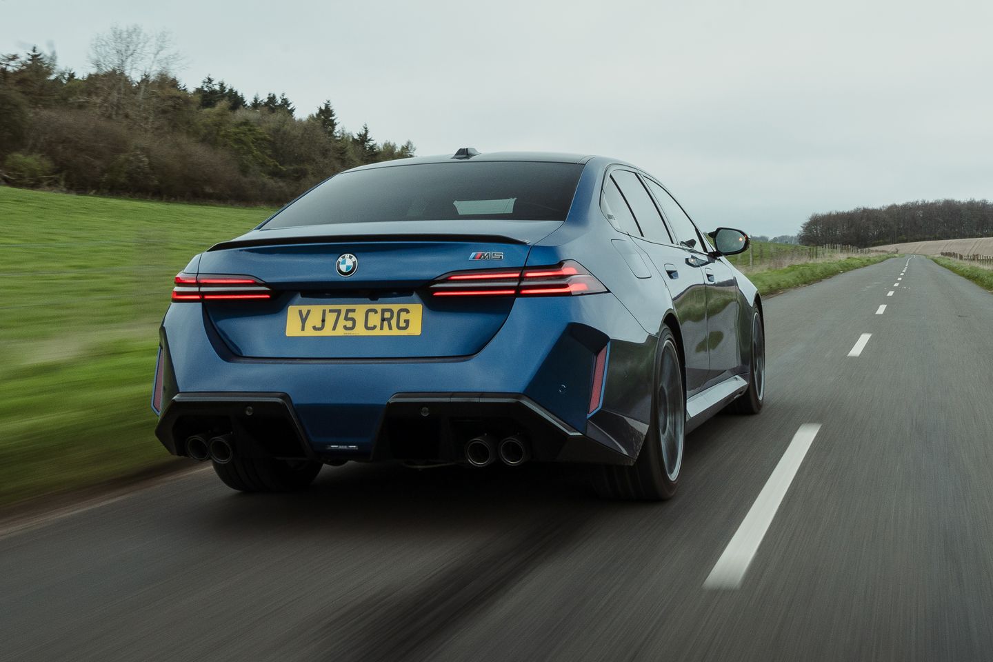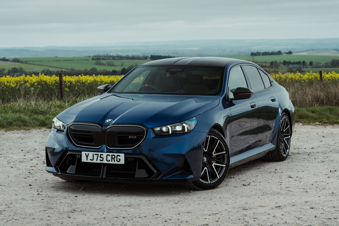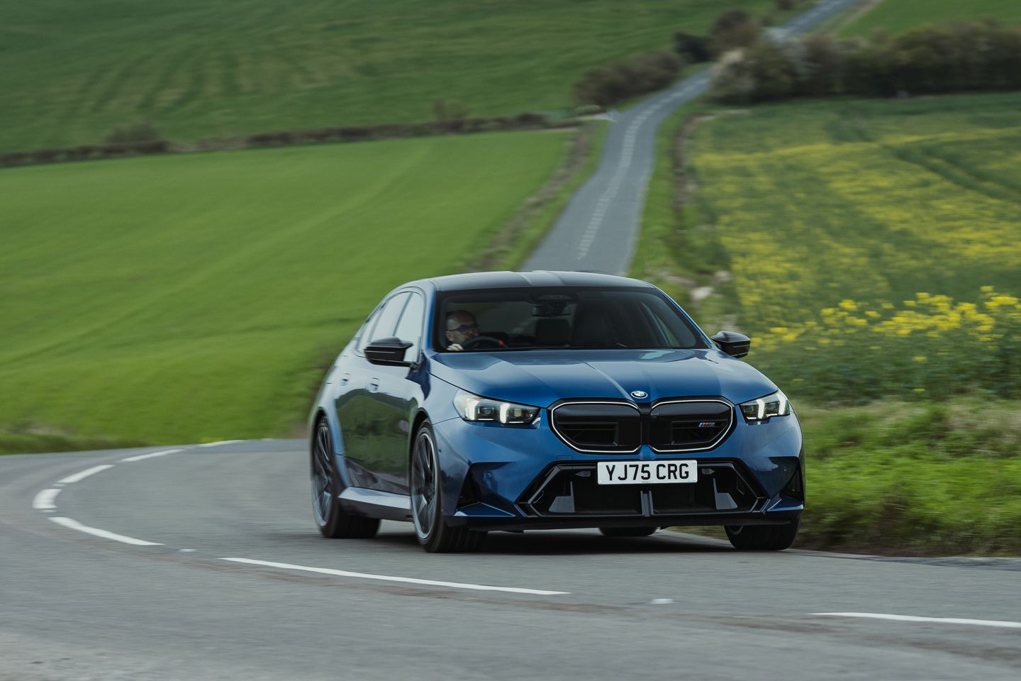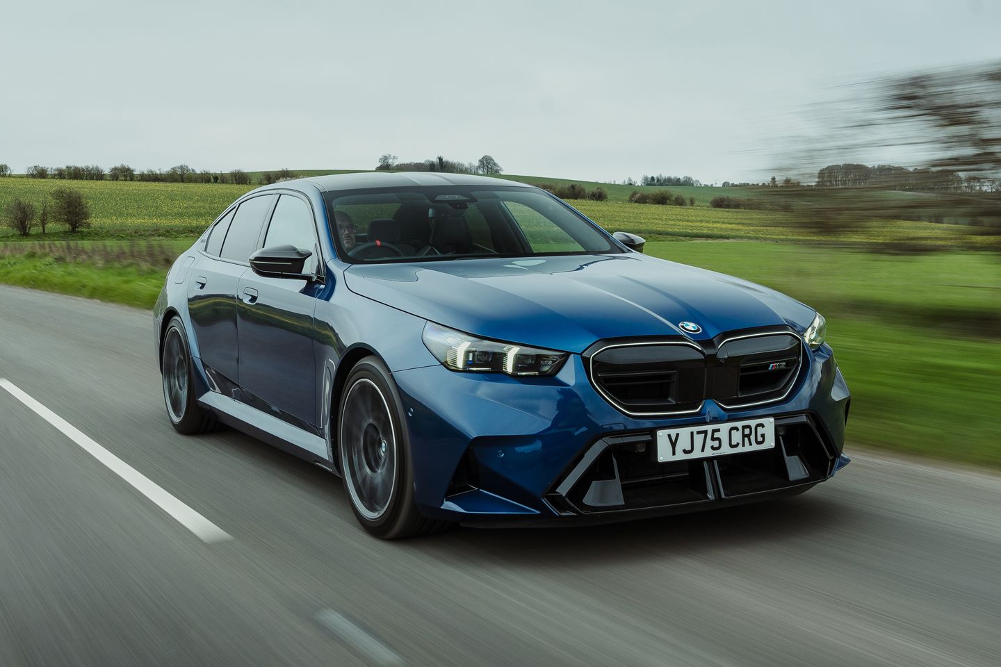 Hope is handed to the G90 by the wonderful work of the BMW UK press office, who’ve had the brilliant idea to specify this example in the same Le Mans blue as their beautifully kept heritage E39. Even the most curmudgeonly cynic has to concede this is a great-looking pair, the latest M5 a bit less burly without an estate body and wearing this blue on silver getup. The low-key menace and unmistakably early noughties angel-eye lights of the E39 still quietly upstage it, yet these two complement each other magnificently in the metal.