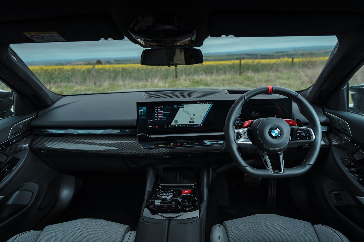 Something I typically toggle every time I get in the car is the DSC button, winding it back to mid-way, ‘4WD Sport’ mode where the M5 is more than feisty enough for road driving without ever being spiky. It feels more agile than a car of this heft ought to, diving its nose into bends keenly, the feeling of an astute front axle it shares with an M2 or M3 allowing you to have more confidence teasing some playfulness from the rear. You’re just always mindful of its sheer size; it never, ever escapes its width, even in tamer driving as you wince on spindlier urban and rural roads when traffic approaches. Aggressively taking up so much space without truly warranting it does have a whiff of ‘manosphere’ about it, I have to admit.